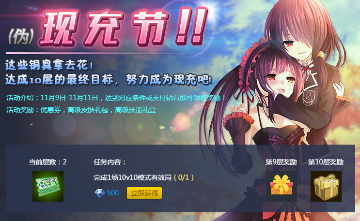 《幻想全明星》(伪)现充节活动现已正式开启!完成相应活动内容即可获得高级皮肤礼包*1和高级技能卡礼包*1。五大双十一女神礼包现已上架,幻酱零食店购物送双十一限定头像框! 活动时间:11月9日-11月11日 活动规则:在活动期间内,每完成一层相应活动内容,都可以获得一次奖励,通关9层即可获得高级皮肤礼包*1,通关10层即可获得高级技能卡礼包*1! 肥宅快乐购 喜迎双十一 活动时间:11月10日-11月15日 活动规则: 购买任意零食满98,送双十一限定头像框。 购买任意零食满198,送双十一限定头像框+中级皮肤礼包。 购买任意零食满298,送双十一限定头像框+高级皮肤礼包。 "双十一"二次元老婆才是真爱礼包,限时五折出售! 薇尔莉特礼包: 原价:57600钻石 折后价:28800钻石 礼包内容:英雄:薇欧瑞特*1,薇欧瑞特皮肤“自动手记人偶套装”*1,7天双倍金币卡*1,7天双倍经验卡*1,本命契约(女)*1。 岛风礼包: 原价:57600钻石 折后价:28800钻石 礼包内容:英雄:岛风*1,岛风皮肤“深海栖姬”*1,7天双倍金币卡*1,7天双倍经验卡*1,本命契约(女)*1。 晓美焰礼包: 原价:57600钻石 折后价:28800钻石 礼包内容:英雄:晓美焰*1,晓美焰皮肤“焰魔套装”*1,7天双倍金币卡*1,7天双倍经验卡*1,本命契约(女)*1。 伊卡洛斯礼包: 原价:133332钻石 折后价:66666钻石 礼包内容:英雄:伊卡洛斯*1,阿波罗技能卡*1,伊卡洛斯皮肤“西瓜天使”*1,7天双倍金币卡*1,7天双倍经验卡*1,本命契约(女)*1。 傻娜礼包: 原价:66666钻石 折后价:33333钻石 礼包内容:英雄:傻娜*1,傻娜皮肤“花嫁套装”*1,断罪技能卡*1,真红强缚技能卡*1,飞焰技能卡*1,7天双倍金币卡*1,7天双倍经验卡*1,本命契约(女)*1。 想要了解和希望看到更多其他相关活动欢迎订阅幻想全明星微信公众号! 全球独有10v10和200人枪战求生的二次元动漫大乱斗端游《幻想全明星》已经正式开启傲娇测试!现在注册登陆还送15英雄10款皮肤10000金币!《幻想全明星》更有枪战求生、玩家自制人族无敌地图现已正式上线,满足你所有需求,现在各种二次元萌妹子陪你一起打游戏,心动不如行动,快来《幻想全明星》享受这独一无二的浪漫约会吧! 更多内容请点击官网:https://www.acmoba.com/download.html?from=xw 了解更多相关信息,请前往http://game.yzz.cn/html/info-2374.html |