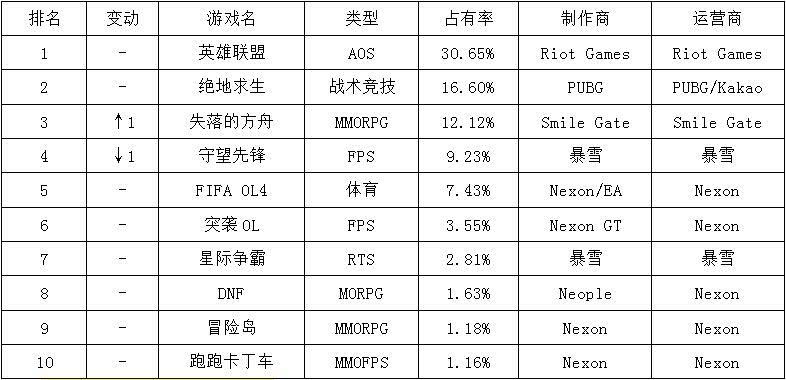 一周韩游榜:《失落的方舟》超越《守望先锋》