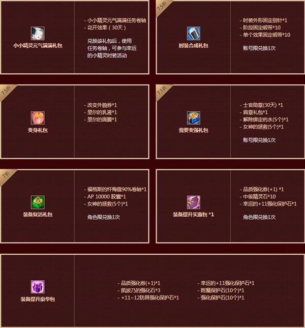 接近一个月的时间里,《洛奇英雄传》的艾琳英雄们似乎陷入了种种疑惑,茉莉安与锁孔之间的故事将如何延续?重拾神力的玛赫又会开启怎样的阴谋?11月21日新版本上线后,这些疑问一一揭晓,战争女神玛赫还将与各位英雄开启一场激烈对抗!为了迎接这一切的到来,众多新品活动接连登场,无论是吸睛的时装、装扮,还是福利满满的活动,大家可千万不要错过啦! 【多款时装入驻女神的馈赠X】 在11月21日维护后至12月19日维护前,多款时装、尾巴装饰以及女神搭档限时入驻女神的馈赠X。其中,A级“猫女套装”可谓吸睛满满,四款柔软温暖的尾巴俨然成为冬季大热装饰之一! 软萌的猫耳,纯白上衣与光亮的短款皮裙,长筒袜与皮鞋的搭配,无论清纯的萌妹子还是略显性感的轻熟风都可轻松驾驭,而最终它将呈现何种风格,由你来决定! 四款各具特点的尾巴装饰,粉嫩与骚粉的激烈碰撞,这个冬天,我们就要不一样!小巧可爱的“粉色兔尾巴”化身卖萌利器,“粉色/灰色狐狸尾巴”似乎送来了冬季的温暖感,而略显骚气的“粉色猎豹尾巴”则当之无愧地成为了最耀眼的一抹风景! 提尔卡丹的故事让每一位艾琳英雄印象深刻,在11月21日维护后,S级“骑士团团长卡丹套装”与“提尔套装”入驻女神的馈赠X,威武的卡丹与温柔的提尔,现由你来诠释! 【王牌系列时装上架商城】 不用拼手气,商城可直接兑换!11月21日维护后,“王牌女皇套装”与“王牌绅士套装”限时上架商城,拥有它们,你的角色就是最高贵的王牌女王/男神! 【短发发型供你挑选】 在11月21日维护后至12月19日维护前,短发发型永久款限时上架商城!此款发型虽略显呆萌,但干练简洁,不失为一个不错的发型选择哦! 【新款内衣情侣款式】 在11月21日维护后至12月19日维护前,男性角色与女性角色皆会限时上架“情侣款式”内衣永久款。 【火热礼包限时促销】 在11月21日维护后至12月19日维护前,7款礼包限时兑换,低至7折,快来选购吧! 【热销单品限时兑换】 在11月21日维护后至12月19日维护前,3款大热单品于商城上架,有需要的英雄们不要错过啦! 除了以上时装、装饰以及众多礼包、新品外,《洛奇英雄传》还为广大艾琳英雄准备了丰厚的福利活动,同时,为了迎接即将到来的7周年,海量纹章、头衔正在袭来,快将它们一网打尽吧! 【七周年Bingo活动】 赠送最后一张七周年礼券的活动于11月21日开始啦!每天在线1小时,即可于次日获得1点Bingo点数,每点亮一行/列,皆可获得奖励,累计满3/5/7/10还可获得更丰厚的福利哦! 【迎接玛赫活动】 在11月21日维护后至12月5日维护前,“红色烙印”战役出航次数+1,完成后还有几率获得“出征许可证(7天)”。多一次出航,多一次出货的机会,也许,你的诚意能打动玛赫小姐姐哦! 【挑战竞技战】 在11月21日维护后至12月19日维护前,每完成1次竞技战,皆可获得一张“竞技战参与券”,若是你凭借自己的实力获得胜利,还可额外获得“竞技战胜利券”,两种礼券皆可于商店之中兑换奖励! 【战利品纹章活动】 因为何事,让此前不起眼的“它们”,瞬间受到万众瞩目?没错,一大批战利品纹章正在袭来!在在11月21日维护后至12月19日维护前,完成S3的Raid战役,根据所参与的战役不同,将会在结算时获得特定的活动道具,每天最多获得1次。当集齐10个相同活动道具后,可以兑换到对应的战利品箱子,累计可兑换13个不同的纹章哟! 【幸运的小精灵】 在11月21日维护后至12月19日维护前,英雄们在商城中兑换“小小精灵元气满满礼包”,获悉任务后,就可以准备征战之旅啦!每天向奇怪的旅行者上交药水获得黄金硬币,使用硬币后,不仅可以兑换到超萌的“幸运的小精灵套装”,还有一定数量的茉莉安的信仰III与特效恢复药水哦! 【轮盘活动】 在12月5日维护后至12月19日维护前,英雄们完成指定战役可以获得“摩天轮体验券”,当使用它之后,就可开启旋转幸福的摩天轮啦!大马士革钢铁、乐园材料箱子,以及实用的3000AP胶囊与诱惑符咒皆可于此抽到哦! 【欢庆七周年】 《洛奇英雄传》也将迎来7周年,在12月5日至12月27日期间,更是有三重活动欢乐庆生哦!具有纪念意义的七周年特效和憨憨的软乎乎熊猫背包在此恭候,你还不心动吗? 以上,即为11月21日《洛奇英雄传》全新版本的新品及活动。玛赫女神的战场已经准备就绪,3v3竞技战一触即发,还在等什么呢?快进入游戏尽情体验吧! 《洛奇英雄传》官网地址>>>http://mh.tiancity.com 《洛奇英雄传》官方微博>>>http://weibo.com/51 《洛奇英雄传》运营团队 11月21日 |