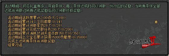 《剑网2》11月版本今日上线,月度活动、初冬充消领豪礼两大版本内容火爆登场,引爆初冬,温暖全江湖! 宝石收集、初冬豪礼、双12特惠购、幸运百宝箱精彩活动四连击,再添初冬豪礼,五大活动带来无限游戏乐趣的同时,更有诸多豪礼放送,精彩内容不容错过! 【初冬豪礼】 初冬充消好礼不间断,充值奖励、消费奖励、每日消费奖励,更有特定限时消费奖励。领取海量星尘、璀璨脉气、怪物图包、武魂传承者礼盒等奖励,敬请关注初冬充消活动。 活动时间:11月22日9:00-12月19日23:59 【宝石收集】 活动期间,参与指定关卡及活动可获得各种宝石。将宝石上交至成都城中的宝石收集箱,可累积宝石箱的价值,不同的宝石对应不同的价值。上交宝石可以获得个人贡献值与全服累积宝石价值。 活动时间:11月22日维护后-12月12日23:59 【初冬豪礼】 活动期间,侠士可在游戏活动大使处领取一个初冬礼盒,每当达成指定条件即可领取一份对应奖励,12月13日可进行新年许愿砂的奖励补领。 活动时间:11月22日维护后-12月12日23:59 【双12特惠购】 活动时间:12月9日0:00-12月12日23:59 【幸运百宝箱】 活动期间,侠士可在游戏活动大使处领取“幸运百宝箱”,根据活跃度领取“百宝箱钥匙”。右键点击百宝箱可开启开奖界面,使用“百宝箱钥匙”进行开奖获得宝箱奖励;也可使用“新年许愿砂”进行奖励升级,每次必得2个技能石碎片,还会额外获得不同数量幸运令牌,用于兑换各种珍稀道具奖励。 更多游戏资讯,请关注《剑网2》系列游戏官网及论坛。 《剑侠情缘网络版2》官方网站:http://jx2.xoyo.com/ 《剑侠情缘网络版2》官方论坛:http://jx2.bbs.xoyo.com/ 《剑侠贰外传》官方网站:http://jw.xoyo.com/ 《剑侠贰外传》官方论坛:http://jw.bbs.xoyo.com/ |
