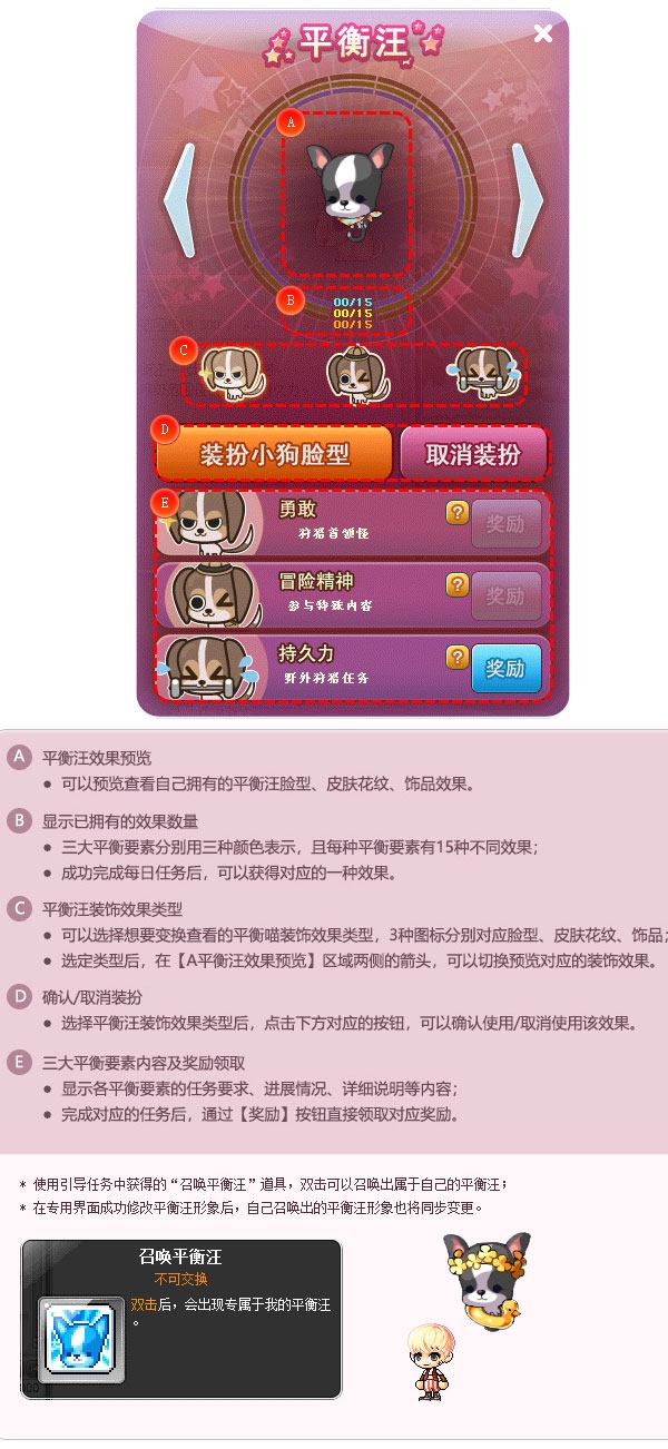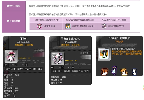 去年单身节期间,人气可爱的平衡喵装饰系统登陆冒险岛,一下子就让猫派“铲屎官”们欲罢不能,不断刷每日任务,只为获得平衡喵活动奖励。但这也引起了岛上狗派“铲屎官”们的不满,纷纷表示:“拒绝吸猫,坚持吸狗!”。 所以作为一向秉持“雨露均沾”原则的游戏——《冒险岛》,将在新推出的V157版本中添加“平衡汪”副本,12月5日更新后,登陆游戏即可体验哟!想吸狗的小伙伴们可不能错过哦~ 为维持冒险岛世界平衡而来的汪星人! 12月5日至12月25日期间,接取<【活动】平衡汪的故事>任务的玩家可以召唤出平衡汪,完成“勇敢”、“冒险精神”、“耐力”这三大平衡要素的每日任务后,即可获得平衡箱、平衡汪装饰效果等基本奖励。当然,根据每日任务的完成次数,还有机会收获额外奖励呢~ 通过查看平衡汪的情况,玩家可以自由创造并打扮自己的平衡汪外观,简单来说,想吸什么样的狗,由你来决定! 另外,领取活动道具“香甜的平衡饮料”并保持在线30分钟后,可以获得“休息平衡箱”奖励,“平衡汪的胡子(30天)”、“平衡汪的帽子(30天)”等专属道具在箱子里等着你哟~ 期待已久的角色删除功能上线!黑历史再见! 此次版本更新后,许多玩家梦寐以求的角色删除功能终于来了!冒险岛上帅气强力的职业越来越多,但苦于之前创建了太多老角色,不能再建新怎么办?这次就能满足你喜新厌旧的烦恼!进入区服后,点击删除不想要的角色,该角色将变成幽灵状态,持续48小时之后,该角色就将会永远消失,在此期间,如若后悔还可以点击还原按钮保留他(她)哟~ 此外,拍卖场也将添加怪怪拍卖功能,想要买卖怪怪卡牌的玩家不用愁啦~ 挑战!星之女神留下的闪亮王冠! 12月5日至12月18日,堆王冠活动再开~参与任务可获得大量经验值以及任意一种王冠或王冠碎片。 收集10个以上的王冠碎片,还能交换获得任意一个王冠哟~此外,玩家在进行堆王冠时,可以根据收集到的王冠种类数量,得到“潜能赋予卷轴50%”、“金色刻印的印章”等额外奖励哟~ 初冬商城开张,给你第一份柔软舒适的暖意~ 天气日渐寒冷,冒险岛商城也被雪白所笼罩,而在这凛冽冬日, “奢华羊绒套装”、“冬日家园套装”、“妙趣冬季礼包”等服饰和萌宠,将给你带来初冬的第一份暖意~ 晶莹剔透的“冬日雪花礼物袋”也会在12月5日至12月11日期间温情回归,使用钥匙打开神秘宝箱,“冬日雪花椅子”、“雪花伤害皮肤”等经典道具就在等你哟~ 更多游戏相关资讯,敬请关注:《冒险岛》官方网站http://mxd.sdo.com/web6/home/index.asp 还可以关注冒险岛微信公众号,获取游戏趣味内容哟~ 了解更多相关信息,请前往http://mxd.yzz.cn/ |