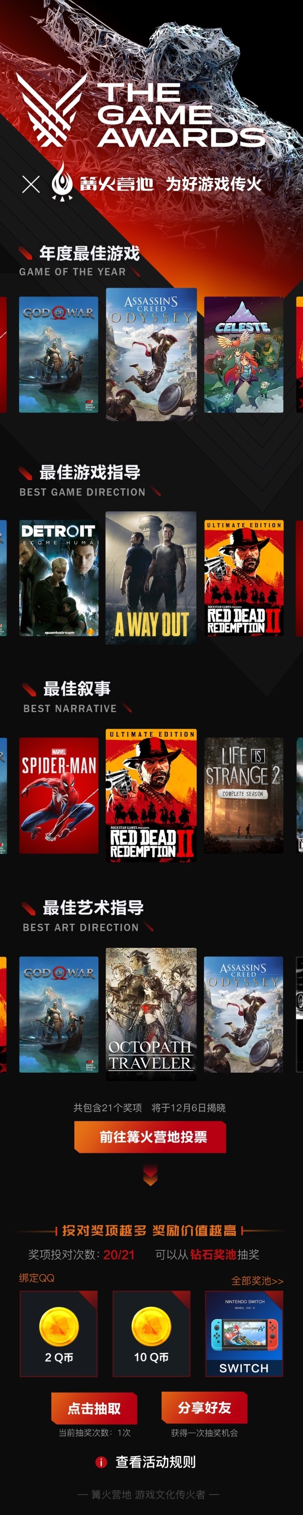 游戏届的奥斯卡TGA 2018年度颁奖典礼将正式举行,观众们可以看到各种年度游戏的诞生,领略到各种新作的魅力,这场游戏的盛宴备受硬核玩家们的期待!北京时间12月7日早8:30分,篝火营地将在各个直播平台为大家转播TGA现场实况。届时将会有超过10款新作公开和精彩的现场表演,玩友们熟悉的原游戏机实用技术(UCG)编辑多边形,将全程直播TGA,和观众们一起“玩起来”! TGA将至 篝火营地带你直击游戏盛典 作为游戏届的奥斯卡,TGA受到了许多玩家的关注。北京时间12月7日早8:30分,篝火营地将在各个直播平台为大家转播TGA现场实况。大家熟悉的资深游戏人多边形将会在现场和玩友们一起见证年度游戏的诞生和新作首发!玩友们记得锁定篝火营地直播间,一起来直面TGA。 对于关注TGA的玩家们来说,篝火营地提供了最完整最专业的TGA信息和重磅福利。玩家们可以观看直播进行朝圣,阅读TGA专题文章,看一看硬核玩家和专业游戏媒体对TGA作出的分析和预测,甚至可以亲身参与到TGA奖项的竞猜中获取奖品。 竞猜奖项 赢取超值奖励 本次TGA设置了年度最佳游戏、最佳游戏指导、最佳叙事、最佳艺术指导等24个奖项,大家熟悉的大作《战神2018》、《刺客信条:奥德赛》、《怪物猎人:世界》、《逃出生天》等都获得了入围。入围游戏都是经典之作,也不乏人气颇高的黑马,这些奖项究竟花落谁家也是TGA的一大亮点。 对于关注TGA的硬核玩家们来说,如何第一时间掌握最专业、最及时的游戏内容,第一时间见证年度游戏的诞生呢?篝火营地就是这样一个深度和专业的游戏资讯app。玩友们不不止可以篝火营地看到TDA的直播盛况,还能提前竞猜奖项获得奖品!Switch、各种人气游戏、Q币,玩友们猜对的奖项越多,获得的奖励价值就越高哦。参与竞猜:https://mwegame.qq.com/act/gouhuo/tga/?uuid=60956420 细心的玩家们可能会发现,大家熟悉的资深游戏人多边形近期在游戏资讯app篝火营地中非常活跃,发布了不少对于游戏深度文化内容的探讨的文章。篝火营地究竟有着怎样的魅力,能够吸引到这些硬核玩家呢? 深度游戏内容 收获最专业的游戏体验 篝火营地的主页做得极其精致,每篇文章都占满整屏,通过上下滑动进行翻页。这种别致的“画报式”排版,可以让玩家获得沉浸式的阅读体验。每次打开主页都会看到不同的封面,在收获新鲜感的同时,玩家也可以把这些精致的封面保存起来作为壁纸。 文章贴心地增加了“全篇字数”与“阅读时间”的提示,而在文章底部,玩家也可以点击“相关游戏”立刻跳转至游戏详情页面。 输出优质内容 重点资讯及时掌握 深度游戏内容、最全游戏库、硬核玩家社区、游戏行业热点跟踪——这是篝火营地不同于其他游戏资讯APP的亮点。在“篝火营地”上,你可以第一时间看到最全最专业的游戏资讯;体验最齐全的游戏库;可以加入硬核玩家社区,与全球玩家一起讨论热门游戏、分享游戏心得,App也将对全球游戏行业热点进行及时跟踪,确保资讯新鲜度。 “篝火营地”联合了多家专业游戏媒体,力求为玩家提供最具深度、最有意义的文章,目前已经和游研社、机核、VGTIME、触乐等国内资深优质媒体达成合作,将最专业深度的优秀内容采编到App内。 同时篝火团队还有自己的专业编辑团队为app输出优质内容。多边形(雪猹)的名字就出现在篝火原创内容的作者信息上,为玩友们带来了很多惊喜。 最全游戏库 及时发现热门新游 层出不穷的游戏,让玩家们苦恼于寻找自己心仪的作品。但有了篝火营地,这苦恼就要变成“幸福的烦恼”:篝火营地致力于打造全球最大的游戏数据库,其中收录了手机、PC联网、PC单机、掌机、主机等所有游戏平台,截止至2018年6月13日,篝火营地已收录共9500+款游戏。 篝火营地的游戏库由三部分组成:每日新游、游戏排行榜以及按主题分类的游戏集合,游戏界面展示了多家专业游戏媒体的综合评分,玩家可以及时发现游戏热点趋势,更好地做游戏购买决策。 除此之外,篝火营地还做到了各大平台游戏降价促销信息实时更新,一键订阅精准把控,再也不错过任何一款对你脾胃的游戏。 然而剁手过度导致钱包干瘪?篝火营地还有购买返利功能,只要购买游戏时符合返利规则,即可轻松拿走Q币。邀请好友一起“买买买”,还收获抽福利大奖的机会!在篝火营地买游戏,凭本事中的大奖,为啥还要剁手呢? 硬核玩家社区 分享你的游戏故事 篝火的玩家交流区叫“游梗”,这是一个很“硬”的社区。和其他的玩家测评不同,在游梗里,玩家们可以尽情地分享个人游戏体验,也可以浏览其他玩友在游戏中遭遇的趣事。毕竟有些梗只有玩过的人才懂,分享游戏过程中的趣事也是个不错的体验。 TGA 2018降至,篝火营地将为玩家们提供最快最好的游戏快讯。这里有最深度的游戏内容、最全游戏库、最硬核的玩家社区,如果你正关注TGA,不妨体验一下篝火营地吧! |