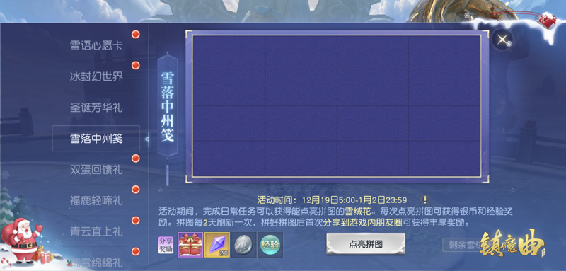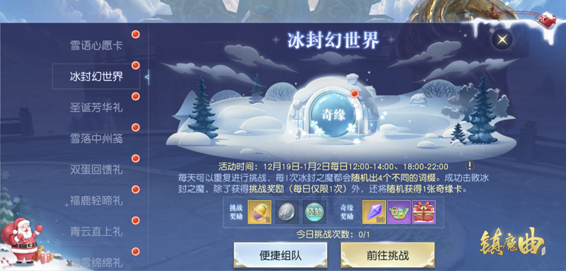 圣诞节,雪花扬,中州大地裹银妆,天阙王城活动忙!今天是圣诞节,网易角色扮演治愈系MMO《镇魔曲》“雪语中州”活动正温暖进行中!即日起至2019年1月2日,天命者们均可参与其中,寄心愿、抢礼包,全新坐骑、挂饰、各类珍稀道具全数送上,与您共度“双蛋”佳节! 坐骑、挂饰齐上线:活动多多,返利不停 圣诞佳节到,《镇魔曲》准备了“福鹿轻啼礼”与“银铃飞声礼”两个限时礼包,全新的坐骑与挂饰,首创的“槽位”模式更让天命者们能自主决定礼包奖励,开开心心过圣诞! 这两大礼包均有6个槽位,除了坐骑“流霜云台”与挂饰“飞铃绕树”外,其他5个槽位的奖励均会让天命者们3选1,根据天命者们的实际情况挑选最实用的奖励!如果全部都想要也不要紧,天命者们可以任性买买买,把所有奖励打包带回家! 同时,《镇魔曲》还准备了青云直上礼、云帆逐浪礼、瑞雪绵绵礼、华灯初上礼、芳心诞彩礼、龙翔琼楼礼、凤舞玉宇礼、圣诞大富翁等超值活动,充值即享高额回馈,各类返利拿到手软,赶快来参加吧! 雪语心愿卡:许下心愿,收获惊喜 除了圣诞礼物,《镇魔曲》还准备了精彩的“双蛋”活动等着天命者们参与!圣诞节,每个人都会有一个小小的愿望,希望圣诞老人能听到,并在这个特殊的日子里将它实现。 圣诞老人是个美丽的童话,但《镇魔曲》能满足你的愿望!“雪语心愿卡”活动中,每位天命者都可以许下自己的愿望,每天1位幸运儿送上包括珍稀材料、神兽材料等奖励在内的“圣诞喜礼”,还有绑定元宝、周边银饰等终极大奖呈上,看看谁是新年最强“锦鲤”! 冰封幻世界:挑战难关,赢取奖励 寒冬时节,天气转冷,圣诞节的喜庆气氛却不受影响,穿透了朔风大雪,进入万户千家。温暖的壁炉、漂亮的圣诞树、精心准备的小礼物,妆点着这个一年一度的节日。 然而,总有妖魔不愿人间祥和。如那出现之际便会冰封千里的“冰封之魔”,便趁着圣诞节出来搞事情!每天12点至14点、18点至22点两个时间段里,天命者们都可以前往挑战、阻止它为祸人间的阴谋,成功即有幻彩虹光等奖励送上,还能收集“奇缘卡”、赢取绑定元宝、圣诞喜礼等额外奖励! 圣诞芳华礼:佳节赠礼,有缘即得 瑞雪纷纷扬,行人迎面笑。圣诞节,中州大地的人们也被节日气氛感染,脸上洋溢的笑颜、街边布置的树景、家中守候的亲人,让这一天充满了温馨与快乐。如果能收到家人、朋友们的礼物,便是最开心的事情。 善解人意的《镇魔曲》开花组,也为天命者们准备了惊喜礼盒,让天命者们好运“捡”出来:每天11点59到23点59分,每个整点都会随机选择三个场景刷出大量礼盒。天命者们只要注意提示、前往对应场景,就能捡到圣诞礼盒,收获魂珠、明光玉等各类珍稀奖励咯! 雪落中州笺:点亮拼图,好礼不断 “双蛋”时节,雪花纷扬。晶莹洁白的雪花美丽剔透,就如同为高雅圣洁象征的雪绒花一般,受到无数人喜爱。 《镇魔曲》“雪语中州”系列活动中,也为天命者们准备了一个与雪绒花有关的活动:雪落中州笺。参与日常活动、收集美丽的雪绒花,点亮拼图便能收获海量银币、经验奖励,把这份美丽分享到游戏中朋友圈里,更有圣诞喜礼、明光玉等超值奖励送上哦! “双蛋”送好礼:特权减负,长假无忧 “雪语中州”温暖进行,乐趣、奖励样样不落!除此之外,《镇魔曲》还为天命者们贴心备下“双蛋”好礼,特权减负齐上线,小长假也不用担心游戏进度落后! 圣诞节当天,“圣诞雪礼”将正式上线,天命者们能享受到元宝商城全场打折的好福利!“元旦福礼”则会在新年第一天与天命者们见面,惊喜礼包、绑定元宝等丰厚奖励已备好,还有元旦签到的海量福利送上! 同时,“圣诞减负礼”与“圣诞特权礼”也将同步推出,日常活动点击完成、奖励一个不少!还能收获全新时装、升级减负特权,小长假里任性玩,游戏进度不耽误! “雪语中州”邀请函已到,《镇魔曲》邀你一起过“双蛋”!全新活动、丰厚奖励,驱散寒冬气息,一起温暖过佳节! 关于《镇魔曲》手游: “在最美的时光,遇见最好的我们”——治愈系MMO镇魔曲,2018年度资料片《治愈系?初见》今日上线!七大法宝体系解封,苍梧之上琉璃境现世,更有上市来首个新职业“殊音”登场。七大职业、十大主角、21个战斗流派,“战法牧”组团开荒。交易?师徒?夫妻?家园,真实关系温情陪伴! 官方网站:https://zm.163.com 官方微信公众号:zhenmoqu_neo 官方微博:镇魔曲手游 官方论坛:https://zm.16163.com 网易大神号:镇魔曲手游 了解更多相关信息,请前往http://game.yzz.cn/html/info-1112.html |