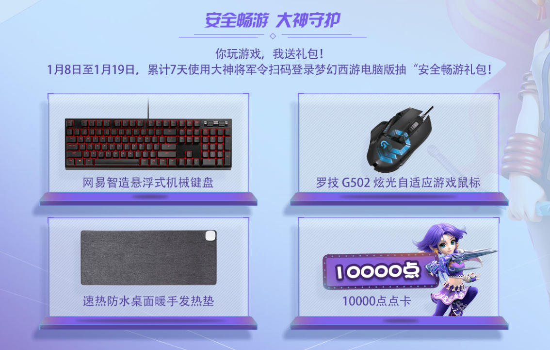 网易大神x《梦幻西游》电脑版福利全面升级,海量好礼诚邀三界少侠加盟!即日起,少侠们登录网易大神,即可参与多重活动。绑定游戏角色邀请好友,超级小白龙天天抽;激活大神将军令,赢取专属礼包、游戏外设、千元点卡;录视频送祝福,还有《梦幻西游》电脑版猪年春晚门票等你拿! 【福利中心升级 超级小白龙天天抽】 网易大神《梦幻西游》电脑版福利中心开启,诚邀亿万梦幻玩家体验分享海量福利!1月9日-23日,所有下载并绑定成功的玩家均可参与抽奖。活动期间每晚20点,游戏内将抽取2名大神玩家送出超级小白龙。此外每日签到并分享游戏道具,即可轻松获得福利,还能参与每日抽奖,有机会获得五宝盒子、高级魔兽要诀、大神专属称谓等海量奖励! 【将军令特权月 玩游戏就送礼包】 大神将军令全面升级,“升级特权月”惊喜活动、四大特权带你游戏带你飞!1月8日-19日,累计7天使用大神将军令扫码登录的玩家可参与惊喜抽奖,活动结束后,将从中抽取1名玩家送出“安全畅游礼包”,机械键盘、罗技鼠标、千元点卡等你领! 此外,使用大神将军令的玩家还能享受四大特权! 特权一:1月8日-23日,激活大神将军令即可在《梦幻西游》电脑版中领取专属奖励; 特权二:每月19日保密节,大神将军令玩家可答题领取10倍经验,更有机会赢取高级魔兽要诀; 特权三:绑定大神将军令,每天都可在游戏内“长安城房都尉”答题领取额外经验; 特权四:账号安全成就,绑定大神将军令可点亮账号安全图的盾牌。 【玩转梦幻猪年春晚 分享祝福赢大奖】 《梦幻西游》电脑版猪年春晚将于1月28日20:00在“活动专区-梦幻春晚”服务器举行,即日起登录网易大神APP参加#梦幻春晚祝福墙#活动,上传你对梦幻/春晚的祝福视频(视频内容不限,不强制出镜,可以卖萌耍酷,也可以方言送祝福),即有机会获得春晚入场券,还有机会获得1000点点卡和周边大奖哦! 网易大神携手《梦幻西游》电脑版,多重惊喜福利来袭,马上登录网易大神,变身大神玩转游戏! 【关于“网易大神”】 网易大神是游戏玩家专属的兴趣社区。这里汇聚了广大精英玩家、游戏圈红人、行业大咖,集合了网易独家的官方资讯和福利趣闻,旨在为玩家打造一个丰富的游戏兴趣社交圈。玩家可以在网易大神与游戏中的好友实时聊天、多元互动;以游戏会友,结交更多游戏同好,和大神一起发现更多游戏乐趣。 官方网站:https://ds.163.com 官方微信:wyds_163 官方微博:@网易大神APP 官方大神号:@网易大神 |