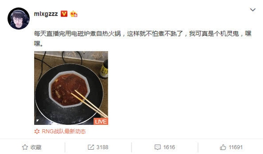 近日,如此“天不怕地不怕”的Mlxg却认了一次怂。到底是怎么回事呢?原来,在Mlxg一次直播下播之后,他使用电磁炉煮自热火锅。并且,还非常“得意”地发了一个微博。在微博中表示,“这样就不怕煮不熟了,我可真是个机灵鬼,嘿嘿。”