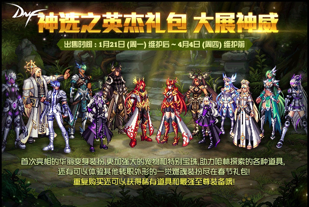 万众瞩目的DNF新春版本即将于1月21日正式上线。新等级新装备,新深渊新副本,英雄平衡性改版,还有海量活动和福利,惊喜全面来袭。目前倒计时仅剩一天,“突袭!佧修迷影”H5小游戏抢先上线。玩家可在微信公众号菜单栏,助手APP等阵地体验,提前征服95版本新boss,更有珍贵道具及绝版装扮等你来拿。 “突袭!佧修迷影”游戏链接:https://dnf.qq.com/cp/a20190104game/index.html 新副本新BOSS抢先战 邀请好友赢福利 在“突袭!佧修迷影”小游戏中,泰波尔斯、哈林地下城以及超时空漩涡三大95版本核心副本提前与玩家见面。玩家通过点击小游戏链接,或者DNF微信公众号都可参与。不但可以抢先体验新版本,还能获得金币兑换惊喜大礼。礼品包括95传说防具、新深渊通行证以及金猪装扮。除此以外,玩家还可以邀请好友共同参与,赢取更多金币。叫上三五好友,快人一步体验新版本内容,轻松赢取大奖,不容错过。 95满级扩张 新起点新挑战 在明日的全新版本中,勇士们的角色等级上限达到95级。同时20个职业将进行平衡性改版,男圣骑和剑豪会以全新的面貌与大家见面。新区域哈林将有6个新的普通地下城,其中的深渊派对可以获得95级哈林史诗装备。而普雷的故乡——曾经美丽的星球泰波尔斯成为新的高难度地下城,和全新的深渊星空裂隙一样,都可以获得最强大的泰波尔斯史诗套装。通过超时空旋涡掉落的反物质粒子还可以升级泰波尔斯史诗防具。作为95满级扩张的第一站,新版本将带来玩家足料的惊喜。 无上尊荣 新春礼包明日上架 年度最具人气的新春礼包也将于明日正式上架,今年的春节礼包从装扮到内容都充满亮点。头肩部位技能宝珠属性提升到1~50级技能+1,辅助装备宝珠增加了所有攻击力+3%的属性,同时宠物、称号等都得到提升。装扮加入了酷炫的套装特效,让玩家回头率翻倍。多买多送的大量好礼和三大至尊道具也不会缺席,天命英雄特别宝物礼盒、LV90史诗防具套装自选礼盒等震撼福利为玩家带来顶级的游戏体验。 除此以外,新版本海量线上活动以及福利也全面来袭。勇士回归直升90级,冲级活动、超时空漩涡、哈林环游记、红包嗨翻天、在线签到、冒险家征集令等活动全线出击,狂欢就是现在! 倒计时一天,DNF新春版本——“佧修迷影”明日正式上线。更多惊喜,敬请期待! 关于DNF IP: DNF 是腾讯首个以经典游戏为起点,跨国打造的游戏IP。2018是DNF在中国运营的第十年,汇聚了超过3亿勇士的热爱,DNF已经沉淀了深厚的玩家情感和独特的游戏文化,Fight的品牌主张也激励众多玩家。除此之外,DNF打造了文学,动画,音乐,漫画等多种内容形态,首部官方小说《最后一个使徒》,官方动画《阿拉德:宿命之门》相继上线。十年勇士热爱,未来更加精彩,更多产品和内容形态将不断推出,持续为玩家塑造精彩纷呈的阿拉德世界。 |
