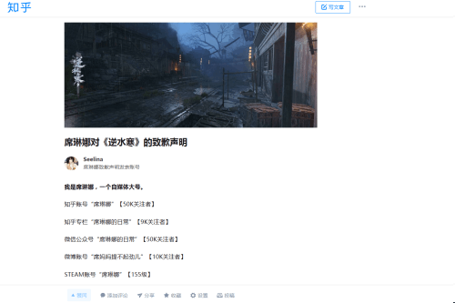 24日上午,知乎前大V“席琳娜”通过自己的微博微信等所有账号,公开向武侠游戏《逆水寒》以及网易游戏道歉,此前,“席琳娜”曾以知乎平台为阵地,发表了多篇言辞恶毒污秽的《逆水寒》评测文。 在道歉声明中,席琳娜承认:基于第三方的商业合作需求,以恶意抹黑为目的撰写了多篇关于《逆水寒》的负面文章,其中内容大多以凭空造谣、脏话诬蔑以及偷换概念和夸大客观事实为基础。 同时该大V还承认:虽然我有注册逆水寒的账号,但我从未登陆过逆水寒这款游戏,而是通过搜集了网络上未经证实的现有负面素材进行二次加工与联想,从而对网游《逆水寒》进行舆论攻击和负面口碑引导。 并且在抹黑攻击《逆水寒》的文章发布后,还“通过多方关系对文章进行了多次的推广与传播”。 网易最新的这款武侠端游《逆水寒》自2018年6月末上线后,遭遇了令人错愕的两极分化口碑评价。赞扬者认为该游戏画质优异、剧情扎实,配得上“会呼吸的江湖”的称号。而包括“席琳娜”在内的大量自媒体恶评者认为该游戏“粗制滥造、恶臭不堪”。这种分化的舆论也导致了《逆水寒》官方愤怒地不点名痛斥“黑公关陷害”,该游戏官博更是不惜以丢掉工作为代价,不顾网易游戏的规定,私自利用官方微博手撕黑公关。 据悉,在国家肃清网络黑公关不正风气的大好氛围下,一些围攻过《逆水寒》的黑公关案件也顺利告破,本次知乎大V“席琳娜”在公开道歉书中提到的“基于第三方的商业合作需求,以恶意抹黑为目的撰写了多篇关于《逆水寒》的负面文章”,也从侧面证实了,黑公关的阴影,确实笼罩在中国游戏行业的上空。强大如网易游戏,尚且会被有组织的黑公关打得束手无策,那么千千万万的中小游戏开发者面临的困境,无疑更加令人担忧。 自媒体时代信息泛滥,每天我们面对的信息海洋里,究竟哪些是真的,哪些是假的,这毫无疑问已经成为普遍困扰当代人的一个公众问题。 下为道歉声明全文: 致歉声明 我是席琳娜,一个自媒体大号。 知乎账号“席琳娜”【50K关注者】 知乎专栏“席琳娜的日常”【9K关注者】 微信公众号“席琳娜的日常”【50K关注者】 微博账号“席妈妈提不起劲儿”【10K关注者】 STEAM账号“席琳娜”【155级】 以及席琳娜的后宫群1-17个QQ大群的所有者【群友共计34K】 这份正式致歉声明是针对武侠游戏《逆水寒》以及网易游戏进行的一个事实说明 自2018年4月以来,我曾多次针对《逆水寒》以及网易旗下多个产品进行了恶意的污蔑性评论,对其造成了不可估量的经济损失与负面影响。 关于客观动机与事实: 一、基于第三方的商业合作需求,我以恶意抹黑为目的撰写了多篇关于《逆水寒》的负面文章,其中内容大多以凭空造谣、脏话诬蔑以及偷换概念和夸大客观事实为基础,对作为刚面世的全新游戏《逆水寒》的口碑造成了极大的负面影响,我的煽动误导致使大量尚未玩过《逆水寒》的玩家与网友跟风对这款游戏进行了大规模的差评和攻击。 二、虽然我有注册逆水寒的账号,但并未登录过逆水寒这款游戏,而是通过搜集了网络上未经证实现有负面素材进行二次加工与联想从而对网游《逆水寒》进行舆论攻击和负面口碑引导。 客观来讲,我并不具备评价《逆水寒》游戏品质的资格与前提,而是单纯的依靠主观臆想对其进行了抹黑。 三、在相关抹黑攻击《逆水寒》的文章中,我通过多方关系对文章进行了多次的推广与传播,导致这篇黑文于多个平台转发并登上首页,传播与影响极大,对《逆水寒》造成了不可估量的经济损失与名誉损失。 关于致歉: 由于我个人主观情绪浓烈且冲动暴躁,在利益的驱使下通过撰写负面文章和进行抹黑公关类行为对《逆水寒》和网易旗下相关产品造成了极其庞大的负面影响与经济损失,在此我诚恳的对网易公司致歉,删除所有相关抹黑文章,并许诺今后不再对包括《逆水寒》在内的相关网易旗下产品进行任何不实与抹黑言论。 赔偿以及警示 《逆水寒》作为一款网易投入了大量资金历时多年研发的端游,在这个端游市场已经步入暮年的大环境下,本是一款寄托了无数制作人员的汗水与希望、承载着诸多国产游戏技术先驱荣耀的作品。 事实上客观来讲,《逆水寒》在游戏中运用的各类技术均属于国内前端范畴,游戏的画面质量上乘,对宋代市井环境的复原以及武侠江湖氛围的营造都是得到了大量玩家认可的。 而我则在游戏宣发时期通过不正当的手段于各个媒体大肆诋毁恶意中伤这款产品,对其进行了各式各样的舆论打压与攻击,对其造成了非常负面的影响和无法估量的经济损失。 作为《逆水寒》负面舆论的引导者,我负有不可推卸的责任。 虽然相比于我对网易公司造成的庞大经济损失而言只是微不足道的一小笔。 但我愿意对杭州网易雷火科技有限公司进行20万人民币金额的赔偿以正视听。 并表态今后我将严格遵守相关法律法规,配合国家净化网络生态、严打网络黑公关的要求,积极建设风清气正的网络舆论环境。 同时希望各位自媒体同行能够引以为戒。 “席琳娜”知乎账号已被封禁无法发布声明,本致歉声明将在我目前所拥有的所有自媒体账号上进行发布,最后再次对被我诬蔑过的《逆水寒》以及网易相关产品进行致歉,我真诚的为之前所发表的一切不实言论感到抱歉。 席琳娜 2019-1-24 |
