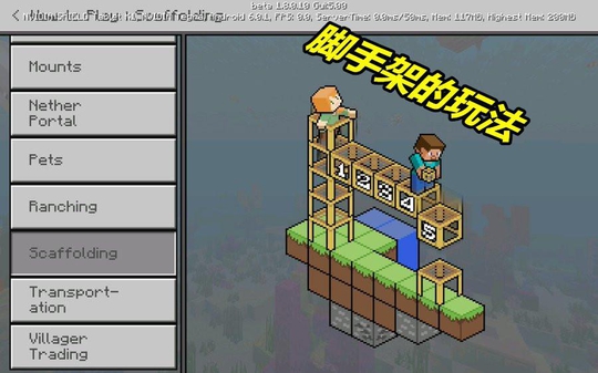 这是熊猫延伸而来的工具,因为有了熊猫才有了竹子,有了竹子才有了脚手架,说起来这一切还得益于早些我们中国玩家的投票。除了熊猫以外,《我的世界》基岩版1.8还更新了一个神器级别的工具——脚手架。 合成:6根竹子+1根线合成;竹子可以通过杀熊猫获得哦,只要你敢的话; 玩法1:燃料;脚手架可以放熔炉里当燃料哦,当然这个也没啥用; 玩法2:攀爬;脚手架最大的用途就是随意上下攀爬,但横向只能放置4格(JAVA版可以6格); 四:流浪猫的礼物