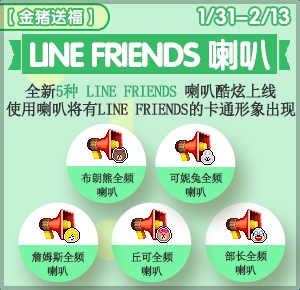 你可以不认识LINE FRIENDS,但是你肯定见过这些萌到爆的卡通形象。 没错,Ta们就是人气火到爆的LINE FRIENDS! 现在,炒鸡萌的LINE FRIENDS正在和知名网游《泡泡堂》进行一系列的游戏线上合作活动。这两大品牌双剑合璧,简直了不得!一经上线,《泡泡堂》游戏的每个角落都充斥着布朗熊和可妮兔的俏皮身影。多款联动游戏道具,以良心的售价,可爱的造型,收割无数少男少女心。2019年LINE FRIENDS X 泡泡堂的新春之旅即将开启。 活动一、LINE FRIENDS炫酷喇叭新春上线 活动时间:1月31日—2月13日 5款全新LINE FRIENDS全频喇叭现已引爆泡泡村。超可爱外形迷倒无数迷弟迷妹,独一无二的效果,只属于你的LINE FRIENDS系列喇叭。 活动二、英雄布朗熊 活动时间:2月4日—2月13日 wuli萌憨的布朗熊化身泡泡堂动作英雄。全新动作技能5连发,憨态萌趣的5款技能动作,惊艳全场。活动期间内,通过完成指定线上活动,以及使用英雄勋章,收集“英雄红星”和“英雄紫星”即可兑换哦。 活动三、泡泡唱吧 活动时间:2月4日—2月17日 泡泡唱吧,新春再度开唱!LINE FRIENDS强力小伙伴集体加盟,2019新春唱吧火力全开。更有众多新品加入,招财猫背景套装,新年让你财源滚滚。金灿灿的金元宝泡泡,助你财源广进。赶紧来唱吧体验一下吧! 活动四、新年穿新衣 活动时间:2月4日—2月13日 2019新年到,穿新衣,迎新年。《泡泡堂》中人气最火的角色“男神LEI”为小伙伴们带来了全新时装“盛世美颜套装”。帅气的装扮,引领泡泡村街头新时尚。 活动五、新春金库乐不停 活动时间:2月4日—2月13日 金库再次降临泡泡堂,给各位小伙伴们带来各种新春福利!在《泡泡堂》所有模式下进行游戏,将有机会获得神秘宝库钥匙,进入地图后可获得海量金币。同时,通过使用道具:弹簧,跳入密室打开宝箱,更可获得全新“福星猪宝宝”背景套装,更有经典赤焰套装限时回归。 活动六、萌宠蛙里奥来袭 活动时间:2月4日—2月13日 LINE FRIENDS全新宠物“蛙里奥”来啦!可爱的蛙里奥宠物会一直跟着你哟。情侣互相遇见,蛙里奥还会为你们深情的唱情歌哟~~~蛙里奥宠物可通过宠物VIP卡随机获得。 精彩活动玩不够,除了以上《泡泡堂》新春活动外, 2019段位春季杯新赛季现已全面开战,2/4—2/6期间每天19点—22点段位经验3倍!经典老段位复开,只等你的加盟,赶紧叫上你的小伙伴们一同参与吧! |