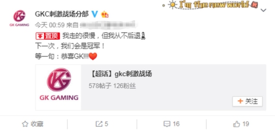 GK在总决战第二局的决赛圈3打7,面对强悍的对手他们一点都不虚,沉着冷静地把所有人干掉,最终以19杀的新纪录吃鸡!