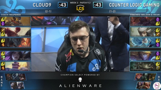 C9比起S8赛季只更换了中单,由于他们的前中单选手Jensen被Liquid买走,C9从欧蛇手中签下了Nisqy。C9目前依然保持着不错的状态,大胡子Zeyzal和女装大佬Sneaky依然是这支队伍中比较亮眼的存在。CLG战队上单依然是门面,中单POE是前几年欧洲比较出名的纳什之牙发条选手,如今在北美经常被吐槽太菜。但是今天CLG似乎找到了对症下药的最好战术。