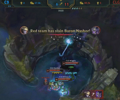 CLG并没有利用这条大龙拿下太多优势,反而是被C9连续开团和抓单缩小了经济差。比赛进入30多分钟之后,CLG还是凭借5条小龙(3水2土)的优势更有主动权。
