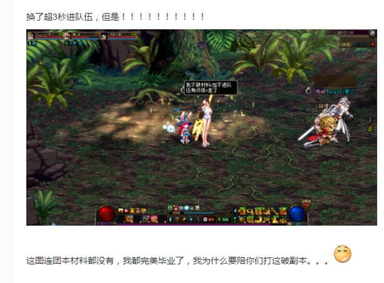 穿上辅助装备之后的他,仅仅三秒钟就成功的进队了,这让他十分意外也颇感现实。可是因为之前遭到了很多次的拒绝,这位玩家居然想要报复社会,于是组他玩家们就遭殃了。刚刚进入副本,这位奶妈就站着不动了,完全不给队友上BUFF,反而表示“我不缺材料,加不进队伍有点烦,走了”