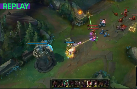 对线卡尔玛,faker一级的时候并没学技能。瞎子在打完红后,直接来到了中路,此刻的faker惊现神操作,李哥直接一级学了锁链,胖将军看到自己被链连住了,而且瞎子也在,胖将军直接闪现。 但让人更加意外的是,李哥在追到塔下的时候,锁链又一次链到了卡尔玛,拿下一血。