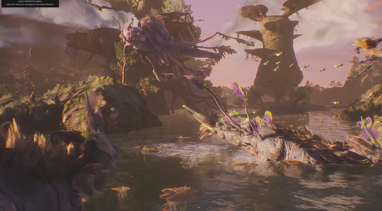 据悉游戏由虚幻4引擎开发,在4分钟的视频展示了丰富的野外场景构造,植被变化,野外生物群,种地、建造,以及巨大的类似机械的BOSS。