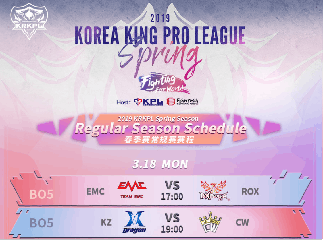 2019年KRKPL王者荣耀职业联赛国际赛区(简称KRKPL)春季赛将于3月18日下午,北京时间17点在韩国首尔s-Plex中心正式拉开战幕。 本届KRKPL以“Fighting For World”为主题,汇聚来自全球各地总共10支知名战队,争夺高达2.5亿韩元的奖金。 3月18日的首日比赛将进行两场BO5的精彩对决,揭幕战是来自中国澳门的EMC战队对阵2018年KRKPL秋季赛的亚军韩国ROX战队。第二场比赛则是去年KRKPL的全胜冠军KZ战队对阵来自中国香港的CW战队。首日比赛阵容强大,曾经只能在国际舞台相遇的战队,如今变成了KRKPL赛区的对手,令人着实期待。 (3月18日比赛预告) 17时 EMC VS ROX EMC战队每位队员都是王者高分段玩家,有四名队员曾参与过终结KZ战队34连胜的比赛,队内辅助EMC.COLA曾经效力过GK俱乐部,实力不容小觑。这支战队最擅长的就是滚雪球,只要前期拿到优势,最后赢得比赛的可能性就非常高。EMC战队势必要拿出全部的实力取得首场比赛的胜利,为新赛季开一个好头。 对于ROX战队来讲,尽管2018年取得了KRKPL赛区第二名的好成绩,但是2018年KCC冬冠杯的表现他们却不尽人意。开战首日,ROX再度面对国际赛区的劲敌,对于他们来说,一方面是需要克服世界赛失利的心理压力,另一方面这也是重新证实自身实力的机会,赛季首胜的重要性不言而喻。 19时 KZ VS CW CW战队每一位选手都是巅峰赛1800分以上的选手,特别是中单选手adam,作为队内核心的输出位,无论是意识还是操作能力都无可挑剔,曾经获得过2018年云南KOC冠军。他们曾经在王者荣耀冬季冠军赛小组赛中耗时64分40秒成功的击败强敌KZ战队。而这一次参加KRKPL的比赛,他们也是誓要冲击KRKPL的冠军,他们还拥有一个比较响亮的口号:冠军只有一个,那就是我们。而他们首日将要做的就是再次将豪门KZ斩落马下。 KZ战队作为2018年KRKPL秋季赛的冠军,他们还用100%胜率开创了王者荣耀职业比赛的历史,不过KZ战队的整体BP思路与战术打法偏向于中后期,为此今年强势的引入了原BA战队770与原eStarPro战队星辰两位实力强劲的中国选手,两名中国选手的加入对KZ战队来讲无疑是得到了补强,让KZ变得更加强大。面对昔日敌手CW战队,KZ战队能否通过新选手的加盟带来不一样的亮眼表现,这场比赛结果也关系着KZ能否再度挑战赛季全胜夺冠的历史记录。 周一傍晚北京时间17时,2019 KRKPL王者荣耀职业联赛国际赛区春季赛将正式打响,斗鱼、YouTube、Naver、Twitch等全球多家人气平台同步开启直播。究竟哪支战队能够笑到最后?中国选手的加盟能否为联赛开创新的局面?这一切的悬念我们在3月18日的揭幕战中一同揭晓! |