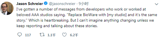 Jason Schreier提到,“也有其他的3A游戏开发者跟我提到,与《圣歌》类似的故事也在自己的工作室同样上演。”