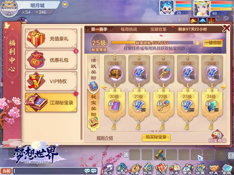 全新《梦想世界》新内容“江湖秘宝”现已开启。全新系统江湖秘宝录上线,完任务赢取丰厚奖励;新角色蛮小离登场,飒爽英姿抢先欣赏;神兽仙兽五技能开放,灵兽觉醒送5技能专有召唤兽!还有新活动、新小精灵等全新玩法等待着大家。 全新《梦想世界》官网:https://mx.duoyi.com/ 全新《梦想世界》新内容江湖秘宝专题:https://mx.duoyi.com/newcont/jianghu/ 全新《梦想世界》年度选美专题:https://mx.duoyi.com/act/beauty/jieshao/ 全新《梦想世界》品牌站:https://mx.duoyi.com/act/dream/ 全新《梦想世界》回归专题页:https://mx.duoyi.com/act/huiliu/ 全新《梦想世界》攻略站:https://mx.duoyi.com/glz/ 全新系统江湖秘宝录开启 完任务赢丰厚奖励 全新《梦想世界》新内容“江湖秘宝”开启之际,神秘新系统终于揭开了他的面纱,江湖密宝录全新亮相,这个记载着梦想大陆众多宝物来源的神秘图册来到大家眼前,《梦想世界》又一次成为了别人家的游戏! 秘宝录,重点就在一个宝字上,按图索骥就能获得各种宝物是它的核心特点。江湖秘宝录会记录玩家的探索值,各位玩家在提升等级、完成日常任务、每周挑战时,可以获得探索值,提升探索值等级就可以领取对应的奖励! 神兽仙兽五技能开放 灵兽觉醒送5技能专有召唤兽 第五技能全面开放,神兽仙兽史诗级加强!一直以来神兽仙兽以稳定的四技能,强力的资质受到众多玩家的青睐,活跃在各个PK场上,不过四技能虽好却不足以顶尖召唤兽行列,现在,神兽仙兽第五技能终于开放,全新pk环境等待你的挑战! 召唤兽的革新,除了神兽仙兽5技能,还有灵兽觉醒的开启,各位玩家在进行洗宠的时候将会获得一定积分,积分达到就会解锁相应的召唤兽,解锁灵兽觉醒即可获得下面这只五技能群恐的大力鬼王,吃点元宵提升资质,相信这将会成为你的一只主力大力! 全新内容"江湖秘宝"开启 新活动等你来玩 全新《梦想世界》新内容“江湖秘宝”正式开启,新角色蛮小离登场,飒爽英姿抢先欣赏;全新小精灵萌动来袭,,高级动作等你解锁;三大活动齐上阵,精彩玩法不停歇。更多精彩内容,尽在全新《梦想世界》! 关于新《梦想世界》 全新《梦想世界》,国风武侠回合战斗网游,十一年经典回合IP,以主修辅修双流派的强大招式体系,继承见招拆招、相生相克的策略战斗特色;同时打造深度游戏世界观,全新美术升级,明月如初,国风新起,这一次,江湖等你缔结侠缘! 更多游戏详情,请关注多益网络 全新《梦想世界》官网:http://mx.duoyi.com 全新《梦想世界》客户端下载:http://mx.duoyi.com/down/ |