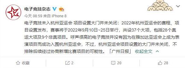 相信很多玩家都还记得,在去年雅加达亚运会上,中国电子竞技代表队有着非常出色的表现。在比赛结束之后,官媒人民电竞曾经发布了一篇名为《致所有关注及热爱电子体育运动的你们》的文章,里面曾经提及到这样一个非常关键的信息——电子竞技在2022年杭州亚运会将成为正式比赛项目。 许多人在看到这篇文章之后,当时的心情估计都和小编一样非常激动。这不仅意味着电子竞技得到了国家层面的肯定,更是在世界范围内得到了社会的认可。然而好景不长,仅仅过了不到一年的时间,在杭州亚运会第一批公布的竞赛大项中,我们并没有看到电子竞技的身影。 大多数的玩家看到这条资讯,想必心里应该十分不是滋味。有网友表示官媒都已经发声了,这怎么说没就没了。逗我呢?不过,在一片质疑和哀怨之声当中,还是有部分从业者表达了相当理性的观点。知名电竞媒体电子竞技杂志就表示,电子竞技进入杭州亚运会的大门并未关闭,不排除后续经过协商新增比赛项目的可能性。 而资深的从业者斯薇斯薇则为吃瓜群众们进行了科普,详细说明了电子竞技从表演项目到成为正式项目的一些列流程。并表示在最终程序论证的结果出炉之前,电竞能否进入亚运会并没有一个确切的答案。 斯薇斯薇所言不无道理,不过小编觉得,作为国家的官方媒体,人民电竞当初既然能够放出那样的话,应该也是在得到了比较确切的消息源之后才放出来的。如今事情出现了反转,想必人民电竞也是有些措手不及。官媒忽悠吃瓜群众这顶帽子,还是扣不得的。电竞能否进入亚运会,还要看最终的表决结果。 那么问题来了,各位看官老爷觉得电子竞技最终究竟有没有可能成为杭州亚运会的正式比赛项目呢?欢迎大家在下方的评论区说出你的想法哦! |