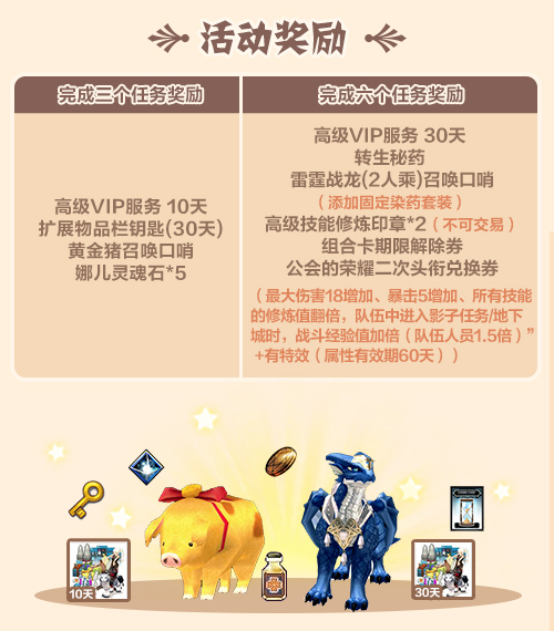 米莱西安,是否还记得刚步入爱琳世界时加入的第一个公会?是否还记得那让人魂牵梦绕的公会名称?是否还记得那些与会友一起征战副本的热血时光? 全新公会活动上线,召回好友,一起升级,一起副本,一起晒出美美的靓照吧,公会的强大需要你们每一个人的付出! 【全新活动-为了公会的荣耀】 《为了公会的荣耀》活动已经上线,小编看到各位公会会长大佬已经在使用各种方法招收新人,本次的公会活动与以往不同,有30人以上的活动要求,并且在种族和累积等级上都有做限制,为了整个公会的全面发展,这些要求当然要努力达到啦! 这次的公会任务也非常有趣,除了几个常规任务外,上传公会成员的照片成了公会会长们头疼的一大难题,为什么呢?因为本次活动中,需要根据要求让公会成员们做出相应的动作截图上传才可以,比如小鸡快跑照片,是需要30个公会成员使用变身技能变成小鸡,才算是上传成功的哟! 本次公会活动还特地邀请了GM大大前来助阵,在活动期间,GM大大会随机出现在爱琳大陆的主城中,等待大家的投食,只要做出GM大大喜欢的料理就能收获一份小小的礼物哟,同时,可以帮助公会完成让GM说出“真好吃”的任务呢! 完成本次公会活动任务后,奖励可以相当的丰厚呢!不仅有强大的双人雷龙宠物、高级VIP服务30天等奖励,还有全新头衔“为了公会的荣耀”,属性小编就先在这边卖个关子咯,一定不负大家的期待哟! 赶紧叫上公会小伙伴一起参与活动吧,公会的强大需要大家一起努力哟! |