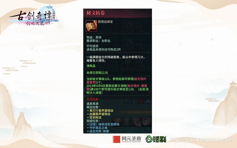 由网元圣唐旗下上海烛龙研发的“真时长、真仙侠、真国风”网游《古剑奇谭网络版》春季版本关注热点:网元圣唐与腾讯音乐娱乐集团合作,新生代歌手叶炫清演唱的春季版本推广曲MV发布;首部角色广播剧《蓬山无路》已经登录猫耳,欢迎收听;秦陵弟子召回再续仙缘好礼赠不停。 欢迎大家点击官网了解详情:http://gjol.wangyuan.com/index.html 《古剑奇谭网络版》春季版本自上线以来,推出了一些列好玩的内容,其中“更稳定的装备获取途径”受到各位仙家弟子的广泛关注,有些后进新人表示对其中的规则有些迷惑。为此,我们将相关的内容以图文的形式作一个梳理,各位仙家弟子看过之后,装备获取会变得轻松。 【如何更稳定地获取装备?】 首先我们要知道“秘文残片”、“秘文拓卷”和“秘隐之器”分别是什么。 什么是秘文残片? 它是一种带有奇特铭文的残片,不同等级的秘文残片可用来获取不同等级的装备:110级秘文残片以下可凑齐合成一个【秘文匣】,开启后可随机获得一件装备;110级及以上的“秘文残片”可在秘文商店兑换到“秘隐之器”,使用后得到一件指定部位的装备。 什么是“秘文拓卷”? 它是一幅载有秘文的残破图卷,游戏中的日常活动可产出“秘文拓卷”。使用“秘文拓卷”可产出对应等级的“秘文残片”。“秘文残片”的等级是与“秘文拓卷”相关联的,秘文等级越高,“秘文拓卷”领悟得到的“秘文残片”等级越高。 春季版本开启后,所有仙家弟子自动获得110秘文等级,在秘文商店累计消耗一定数量的“秘文残片”可提升秘文等级,并解锁该等级合成配方。例如,消耗100个“秘文残片”,可提升至120级更高秘文等级,并自动解锁120级“秘文残片”的合成配方。 通过说明可了解当前“秘文等级”和“秘文残片”消耗进度。 如何获得秘文残片和秘文拓卷? 获取秘文残片的途径有三种:参加问道修行的日常活动、领悟“秘文拓卷” 和乾坤袋制作。 第一种,通过参加小队秘境、团队秘境、荡尽修罗、灵关突破任务之后,在“历世侠名”中点击礼物小标获取。 第二种途径,可通过“秘文拓卷”获取。 “秘文拓卷”则可通过:“青灯行者声望商店”、“血露薇声望商店”“签到商店”购买;通过完成“讨伐!体验流花宫禁地”、“守护真实之境”、“浴日光阵?探索”任务获得。 第三种途径,通过乾坤袋制作。该界面显示当前秘文等级和[秘文残片]消耗进度。 【如何获取到指定部位的装备?】 使用【秘隐之器】即可获得指定部位的装备!它能帮助各位仙家弟子更快更精准地获得想要的装备,不会出现重复获得装备的问题。积累一定数量的110级及以上的秘文残片,在“秘文商店”购买“秘隐之器”并使用即可。在获取到装备池内的全部装备前,“秘隐之器”将优先抽取未获得的装备。 【关于网元圣唐】 网元圣唐秉持“用快乐的方式传承中国传统文化”核心理念,旗下现有上海烛龙、北京九凤、翔跃信息、呈祥影视以及推趣世纪五家全资子公司。《古剑奇谭》系列第三代单机游戏《古剑奇谭三:梦付千秋星垂野》及客户端网络游戏《古剑奇谭网络版》已于2018年上市推出。 【关于上海烛龙】 上海烛龙信息科技有限公司(Aurogon Info&Tech (Shanghai) Co., Ltd.)是游戏软件业内资深人士所组建的游戏研发公司。上海烛龙立志于民族游戏精品的研发,力求打造最好的中文RPG游戏,树立华人次世代游戏的典范。以通过游戏这种方式弘扬中华文化,并以此为展示自己理念的渠道。目前,烛龙团队正有条不紊地推进《古剑奇谭》品牌系列产品研发,持续双向发展单机与网游作品。 【关于古剑奇谭网络版】 《古剑奇谭网络版》是网元圣唐旗下上海烛龙研发的一款真时长真仙侠真国风3D修仙网游,传承并延续了《古剑奇谭》经典IP世界观,故事背景,画质渲染提升,游戏中神人妖魔并存一世,邪剑降临三界,乾坤倒转,三宗六派除魔向道,开启了一段波澜壮阔的修仙之旅,全新春季版本“决战!流花宫禁地”3月14日正式开启! |