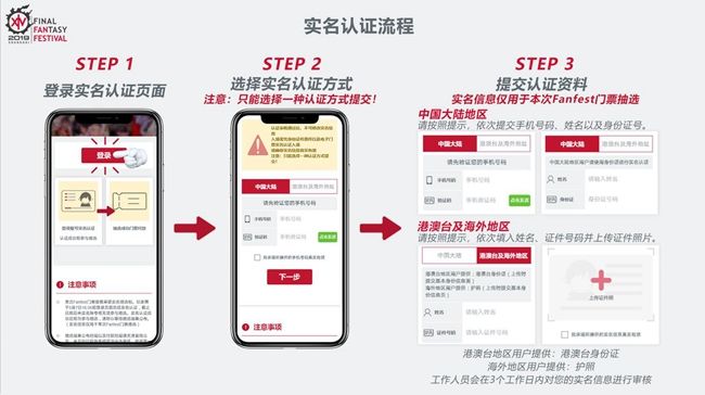 2019“FFXIV FINAL FANTASY FESTIVAL”上海站(简称Fanfest上海站)将于8月10日在上海举办。官方在最近的一期LIVE中公开了关于Fanfest上海站的最新票务情报,本次Fanfest将采用实名制,门票售价498元。 票务实名开放时间:2019年4月23日—2019年5月7日 在最新一期的国服官方LIVE中,盛趣游戏《最终幻想14》项目总监“丝瓜卡夫卡”将为您带来关于Fanfest上海站门票价格、购票流程。 本次Fanfest将采用实名制,门票售价498元。门票包含FANFEST 2019 in SHANGHAI纪念特典道具:SDS芬里尔密钥、迷你克劳德,以及入场专属纪念性周边。 门票贩售注意事项: 本次Fanfest门票贩售采取实名抽选制。玩家需于5月7日16:00前登录页面完成实名认证,截止日期后未实名账号将无法参与抽选。实名认证成功后即为参与抽选,请耐心等待抽选结果公布。(实名信息仅用于本次Fanfest门票抽选) 抽选结果公布时间以及付款时间请关注官网公告。未及时付款账号将取消中选资格。根据第一轮抽选付款情况,将有可能开放后续抽选,请关注官网公告。 抽选要求: 1、抽选结果5月份公布,需要在2月、3月、4月、5月四个月份中至少3个月内每个月有登录游戏的记录。 2、账号下需至少拥有一个达到61级的角色。 每个账号最多只能购买一张Fanfest门票。门票售价498元,采取支付宝付款。 购买门票所附赠的虚拟特典道具将于2019年8月9日当天20:00前发放至购买账号的购买道具仓库。成功购买门票后,活动当天本人凭身份证件原件以及电子门票入场。Fanfest相关消费不赠送艾欧泽亚积分。 如有遇到任何问题,请联系客服,http://kf.sdo.com/ 账号实名认证流程: 在2017年举办的Fanfest上海站中,吉田制作人和《最终幻想14》音乐总监祖坚先生与中国的《最终幻想14》粉丝共同庆祝了周年庆,并为玩家们奉献上了精彩的活动内容。在那次活动中,来自全国各地的3000多位“光之战士”来到FanFest上海站,一起感受《最终幻想14》粉所带来的独特线下魅力。那么,2019年的Fanfest上海站又有多少惊喜?让我们拭目以待! ·关于《最终幻想14》 《最终幻想14》是史克威尔艾尼克斯出品的全球经典游戏品牌FINAL FANTASY?系列的最新网游作品,IGN获得9.2高分,并获得“MMORPG游戏中片尾最长演职员表”、“游戏中最多原创音乐”两项吉尼斯纪录!本作传承了日系幻想RPG的世界观精髓,可实现分辨率高达3840*2160的4K真实画质品质,独特的兵装体系颠覆传统MMO职业定终身的单调设定,实现自由随心转换,传递给玩家真正的角色扮演理念。同时丰富的战斗系统以及多元化的生活玩法,带玩家感受最初的RPG纯正体验。 |