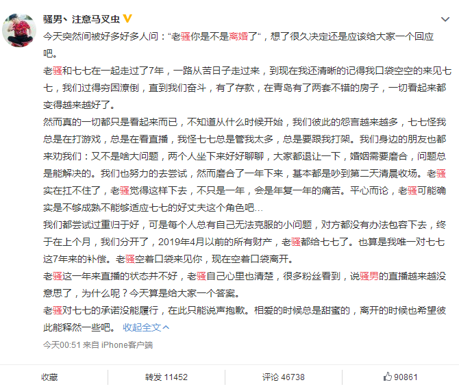 骚男宣布离婚,人设崩塌?净身出户还被网友狂喷渣男!