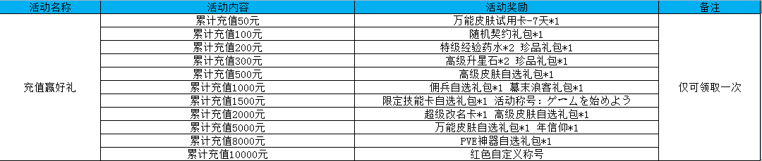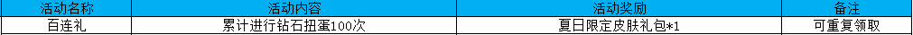 《幻想全明星》精心为您准备了六大活动,陪您欢度劳动节长假,参与活动即可获得皮肤称号和稀有道具。以下是活动的具体内容。 活动一:充值赢好礼 活动时间:4月26日-5月4日 活动规则:活动期间内完成相应的活动内容,即可获得对应的活动奖励,仅可领取一次。。以下是活动内容 万能皮肤自选礼包: 可在所有皮肤中选取一个获得(立华奏-白色睡裙除外) 活动二:星光大道 活动时间:4月26日-5月4日 活动规则:活动期间内完成相应的活动内容,即可获得对应的活动奖励。第十三层赠送和人-导航妖精结衣,第十五层赠送超级改名卡,仅可领取一次。 活动三:劳动节累计登录 活动时间:5月1日-5月4日 活动规则:活动期间内完成相应的活动内容,即可获得对应的活动奖励,仅可领取一次。以下是活动内容 活动四:准点在线 活动时间:4月26日-5月4日 活动规则:活动期间每日21点准时在线,即可获得高级扭蛋币*1,每日可领取一次。 活动五:百连礼 活动时间:4月26日-5月4日 活动规则:活动期间内累计进行钻石扭蛋100次,即可获得对应的活动奖励,可重复领取。以下是活动内容。 注:领取过奖励的玩家才可以重置此任务,超过100次钻石扭蛋未领取奖励仅可完成一次此任务。 活动六:挑战任务 活动时间:4月26日-5月4日 活动规则:活动期间内完成相应的活动内容,即可获得对应的活动奖励,仅可领取一次。以下是活动内容。 《幻想全明星》官方网址:www.acmoba.com |