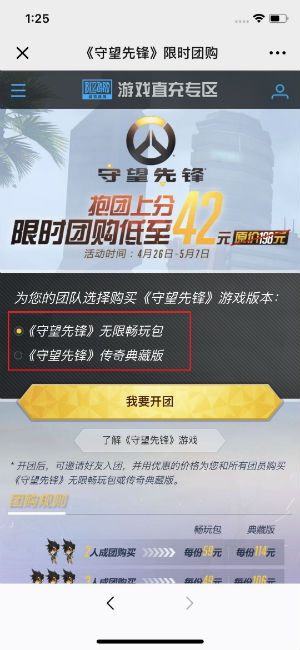守望先锋限时团购来袭,无限畅玩包低至42元