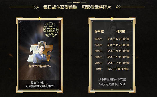 冷兵器军团对抗公平竞技网游《铁甲雄兵》已经迎来全新版本“木兰之约”,一大波全新内容以及丰厚福利活动也随之来袭!在新版本中,不仅仅有结合了军团玩法与塔防模式的新PVE“鲁班学院”,巾帼英雄花木兰也已经正式登场与各位玩家见面!每日参与战斗更可免费领取永久武将! 新版本活动地址:http://bos.ycgame.com/act/201904hdspc/index.html 4月25日至5月25日,玩家每日登陆游戏并且战斗一场(人机战、军团战、排位赛),即可获得花木兰武将碎片。收集武将碎片可以分别获得7元至42元不等的打折优惠券!集齐7枚花木兰武将碎片即可免费兑换永久武将花木兰! 值得一提的是,花木兰武将碎片除了能够用于兑换永久武将花木兰之外,回收每个花木兰武将碎片还可兑换获得500银币,缺少银币购买武将的玩家千万不要错过哦! 除此之外,随着新版本的上线,六大超值福利活动火热开启!在活动期间,分享个人专属砍价链接,邀请好友帮忙砍价,将有机会获得最高5折优惠购买20个贞德皮肤宝箱!另外参与全民集卡,收集交换宝卡碎片兑换武将皮肤、配饰等超值奖励!现在起,参与组建铁甲小队,共同完成任务要求,还有更多丰厚奖励等待领取,助力征战沙场! 新版本还上线了同样令人期待的新pve玩法“鲁班学院”!新玩法结合了军团玩法与塔防模式,参与的玩家与同伴协同作战,通过建设与升级不同效果的建筑设施,抵御一波波越来越强的敌人!同时,在新pve玩法中成功抵挡一波进攻后,参战的玩家将会获得虎威天宝箱,打开即有概率获得赵云虎威天皮肤! 《铁甲雄兵》“木兰之约”新版本现已正式上线,海量惊喜福利等你来领取!更多游戏详情请见游戏官网:http://bos.ycgame.com/ 关于【铁甲雄兵】 《铁甲雄兵》是云蟾游戏历时多年潜心自主研发的一款冷兵器军团对抗公平竞技网游。游戏秉承着以匠心致初心精神,致力为玩家们打造一个绝对公平的竞技环境。游戏采用自主研发的Evolution引擎,为玩家们提供了一个波澜壮阔的融合中西 方文化的冷兵器战场。玩家在战场中将扮演统兵作战的将领,率领军团纵横沙场、攻城略地,在战火中感受真刀真枪的厮杀,体验原汁原味的战场氛围。 |