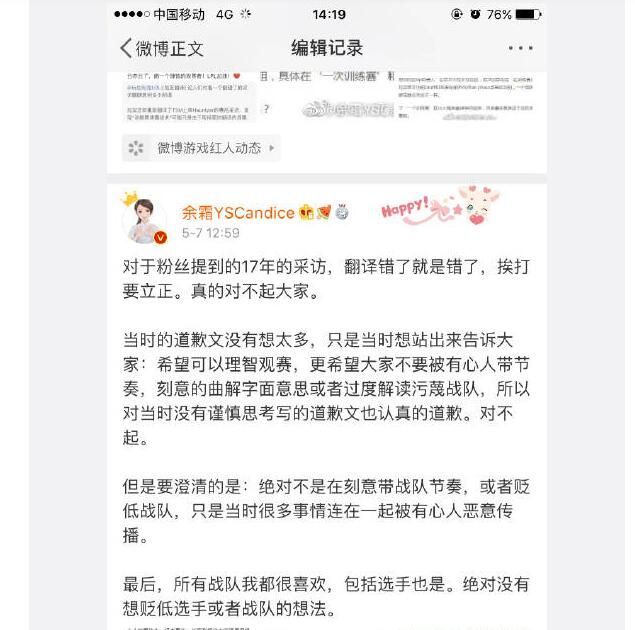 说起主持人余霜,不论是国内还是国外的LOL粉丝对她都有很深刻的印象。流利的英文、出色的主持功力和接地气的性格,让她收获了不少的粉丝。不过余霜小姐姐最近却有点头疼,自己之前和前男友的事情被某些别有用心的自媒体挖了出来,让我们的余震阿姨很是生气。接着,关于之前比赛口误导致EDG被喷的事情又再一次被翻了旧账。 针对此次事件,余霜已经在微博上表示了道歉。然而,EDG战队的粉丝们对此却并不买账,他们认为余霜的道歉微博有些避重就轻,而且最开始的说明丝毫没有提及EDG,有转移话题的痕迹。在修改自己的道歉微博的时候,余霜还对微博一些不友好的评论进行了删除,这招致了EDG粉丝们更大的不满,目前余霜的这条道歉微博下方的评论区,已经是骂声一片了。 有网友也专门针对余霜当年为什么会出现翻译失误进行了解释。小编觉得,根据事后的行为上来看,余霜应该很快就认识到了自己的错误,只不过在道歉的表达上有些欠妥。从余霜以往的言论和举止中,大家都能够感受到她其实是并没有明显的倾向性的。只要是LPL的队伍,她都喜欢,这并不是一个伪命题。 联想起之前视拳的解说们被带节奏,这一次又轮到了主持人余霜,翻起两年前的旧账是EDG粉丝带动的说法未免太过牵强。能够让如此八卦的事情登上热搜,背后的真正原因或许并不简单。 对于近期LOL圈子中的各种节奏,小编其实是非常担心的。当玩家群体的重点不在游戏内容和赛事上面,而是学起饭圈撕逼之类的操作时,对于需要正确舆论导向的游戏圈来说,并不是什么好消息。希望余霜小姐姐不要被最近的节奏干扰到自己的正常工作和生活。 那么问题来了,各位看官老爷怎样看待此次余霜被带节奏的事件呢?欢迎大家在下方的评论区说出你的想法哦! |