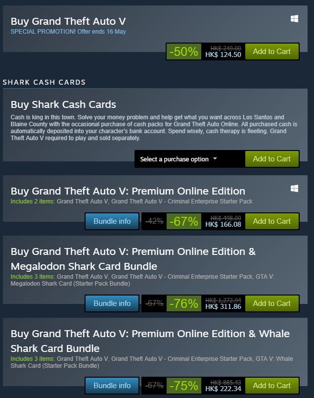 或许因为连续两周都没能进入Steam销量周榜,现在《GTA5》开启了半价促销活动!原价$249的游戏现在仅售$124.5,感兴趣的朋友千万不要错过了! 在减价之后,《GTA 5》瞬间登上游戏热销榜第一。照这个架势来看,《GTA 6》的开发工作又可以往后推一推了。另外对该游戏感兴趣的玩家,可以考虑购买「在线模式豪华版」,只要$166就可以入手游戏本体+犯罪集团新手包,超实惠! |