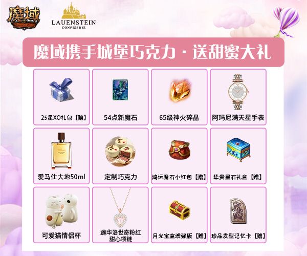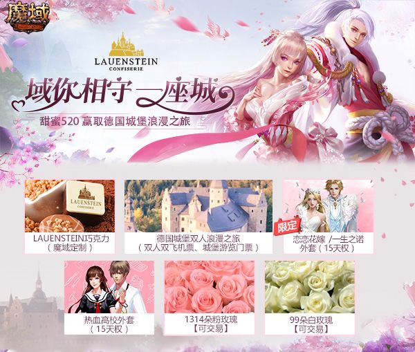 浪漫五月已然来袭,即将到来的5.20可以说是表白的最佳时机了。如此浪漫时节,《魔域》当然要来神助攻。“宠爱一生,域最初的你”,《魔域》5.20炫爱季系列活动今天打响第一炮,与德国知名巧克力品牌LAUENSTEIN联手献上多重福利,甜蜜暴击5.20。“域你相遇,甜蜜城堡”,德国城堡双人浪漫之旅免费送,让您放心大胆的去爱,去表白! 全民福利! 德国城堡双人浪漫之旅免费抢 “一旦品尝就会永远上瘾”,用这样的巧克力来表达心意,相信对方也会“无力招架”吧。这句令人跃跃欲试的话源于德国知名老牌手工巧克力品牌LAUENSTEIN,它以当地的标志性建筑LAUENSTEIN城堡命名,凭借独特的酒味夹心巧克力和精美可口的巧克力受到了中国消费者的强势追捧,被称为“城堡巧克力”。如果有机会到德国当地去吃最原汁原味的LAUENSTEIN,是不是更相得益彰呢?《魔域》携手LAUENSTEIN免费送出德国城堡双人浪漫之旅!福利从天而降,您心动了吗? LAUENSTEIN一开,惊喜自然来。惊喜一,购买LAUENSTEIN蛋型巧克力,百分百获得1314朵白玫瑰一束,以及5次抽奖机会;惊喜二,只要参与完成线上520任务,就能获得抽奖机会参与抽奖(累计最多可获得4次)。抽奖次数越多,中奖几率自然越高,也许开启德国城堡双人浪漫之旅的就是您! 拼手速玩游戏 百万豪礼疯狂送 到德国LAUENSTEIN城堡网红地打个卡,享受碧蓝的天空、葱郁的树木、潺潺的流水和古老的城墙,再来一场最浪漫的相恋……相信这一定是每个女孩梦寐以求的恋爱之旅!而《魔域》带给大家的惊喜也不止于此,参加520“域你相遇 甜蜜城堡”H5活动,玩游戏比拼手速,还有机会领取阿玛尼满天星手表、施华洛世奇粉红甜心项链等豪华大礼! 只要是《魔域》玩家,都可以参与H5小游戏哦!在游戏中眼看巧克力从天而降,快速左右挪动巧克力,躲避阻碍物,挑战成功即有机会获得城堡巧克力。您可无限次参与挑战,每日首次挑战还能获得抽奖机会。游戏玩法虽然简单,但是奖品却是非常丰厚:阿玛尼满天星手表、施华洛世奇粉红甜心项链、爱马仕大地50ml、定制版巧克力、可爱猫情侣杯等甜蜜蜜的豪华大礼等您来抱回家! 心中有爱,就要勇敢说出来!在这个弥漫甜蜜与爱意的表白月里,《魔域》不仅为广大玩家送上浪漫满满的德国城堡之旅,还为各位准备了各种线上线下助攻表白活动,鲜花巧克力、专属情侣头像、成双入对的时装,更有商场限时打折等您来抢。 520炫爱季精彩活动,敬请期待! |
