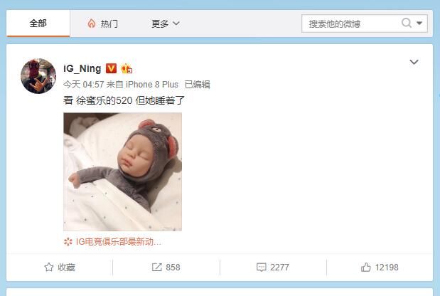 不知从什么时候开始,520成为了又一个情侣们的狂欢节,也成为了单身狗们不愿意遇到的日子。在这个敏感的节点上,刚刚失恋的IG打野ning在微博上发出了多条耐人寻味的消息。这些颇具深意的微博,瞬间点燃了520凌晨的夜空。IG的粉丝们纷纷赶来围观。 #图片来源于ning微博 #图片来源于ning微博 Excuse me?宁王不是MSI的时候刚刚失恋吗?这个徐蜜乐是谁?这么快就有新女友了?吃瓜群众们对于这样的爆炸性资讯显然是不会放过的,“ning徐蜜乐”不出意外的登上了微博的热搜排行榜。 #图片来源于微博热搜 就在大家翘首以盼新爆料的时候,“徐蜜乐”的真实身份却被ning和IG的副总裁藏马联手揭开了。原来,所谓的“徐蜜乐”并不是宁王新女友的名字,而是“xml”的引申。“xml”的真实含义,是ning和藏马玩真心话大冒险输了一双鞋,xml即是“鞋没了”的三个首字母。对此吃瓜群众们纷纷表示,我等了一天你就给我看个这??? #图片来源于百度搜索 在微博的评论区,“异常愤怒”的网友们也是纷纷表达了自己的不满。“高振宁你鞋全假的”,这对宁王来说真算得上是最“恶毒”的抨击了。“因为一个徐蜜乐”一晚上没睡,应该是很多关心宁王的粉丝们真实的写照了。 #图片来源于ning微博 不过小编倒是觉得,ning发的这些微博虽然有可能只是为了在520进行一下恶搞,但也可能真的是“笑中带着泪”。为什么这么说?要知道宁王对于自己的鞋那真的是相当爱护了,输掉一双鞋对于他来说,或许不亚于失恋带来的打击。 #图片来源于IG战队微博 MSI半决赛意外负于TL,表现不佳的ning受到了很多指责;季中赛比赛途中宣布分手,让宁王赛场情场双双失意,如今又因为真心话大冒险输掉了一双鞋,今年的520对于宁王来说,真的不是特别友好。希望ning能够尽快走出MSI失利和失恋的阴影,重新找回自己的状态。IG和他,都需要重新证明自己。 #图片来源于IG战队微博 那么问题来了,各位召唤师觉得ning什么时候会找到新的女朋友呢?欢迎大家在下方的评论区说出你的想法哦! |