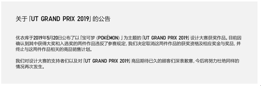 优衣库宝可梦UT设计大赛后续:国人冠军资格被取消