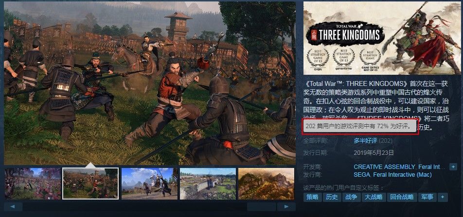 《全面战争:三国》Steam好评率72% 进不去的问题已修复