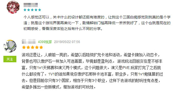 提问最多:演义关卡难倒玩家 《英雄爱三国》演义玩法包含六章,共计54个三国故事。关卡中的人物对话融入了三国历史,除了增加演义的趣味性,也是通关的提示,每一个章节通关之后可以领取宝箱获得武将卡。 随着关卡难度一路提升,在游戏聊天、贴吧论坛询问讨论某某演义关卡怎么过,在玩家日常交流占据了较大比重。通过技巧、思路,玩家们发现了不止一种通关策略,也享受到动脑的乐趣所在。 期待最多:船新版本船新卡牌 有趣的九宫格卡牌玩法,让《英雄爱三国》公测伊始,即受到玩家的欢迎。因此,对于新版本、新玩法的期待,也成为玩家们十分关心的一个话题,不少玩家对于新内容,积极建言献策。而官方也表示,将尽快推出全新内容。 趣味最多:用心良苦尽献良策 《英雄爱三国》虽然走轻策略玩法,但还是会有脑子不够用的时候。特别是面对神壕玩家的高级紫卡、限定卡,已成为玩家发动聪明才智,扳倒大佬高光表现的背景板。评论区,这样的分享也十分常见。 相信随着玩家对游戏更深入的理解,以及官方对于全新内容的精心打磨,这款游戏也将获得越来越多玩家的认可。 关于《英雄爱三国》 《英雄爱三国》是一款娱乐休闲、套路满满的九宫格对战手游。纯手绘水墨国风,随时随地享受极限1分钟的脑力对决。创新的九宫格布局,轻松上手,看似简单却衍生出万千套路玩法,其乐无穷。 |