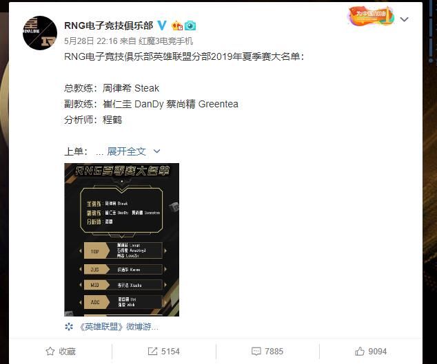 在上单letme宣布退役之后,RNG的粉丝们的注意力就一直在另一位知名选手mlxg的身上,休息了整整一个春季赛的香锅夏季赛会不会上场呢?近日,RNG的官宣给了我们最终的答案,那就是——不会。 #图片来源于RNG战队微博 RNG在上单LoveZrr加入之后,终于公布了夏季赛的阵容。在这份名单中我们可以看到,RNG足足在上路囤积了三位上单选手,可见俱乐部对于这个位置的重视程度。然而在这份名单中,我们并没有看到姿态和锅老师的名字。姿态已经宣布过退役一次了,春季赛临时披挂上阵实属无奈之举,而如今RNG上单位置进行了补强,姿态的落选并不意外,然而mlxg也没有在名单之上,难道锅老师真的是要退役了吗? #图片来源于RNG战队微博 香锅作为队内的老选手,其出众的实力为他赢得了诸多粉丝的青睐。多次力挽狂澜的他,也被很多人视为RNG的救世主。虽然很久之前就有传言说,香锅和让帝会一起选择退役,但是目前为止RNG还是迟迟没有官宣。很多网友就表示,锅老师你别让我们等了赶紧回来吧! #图片来源于RNG战队微博 在皇族宣布夏季赛阵容的微博下方评论区,网友们几乎清一色的都是在呼唤锅老师回归。这样一位功勋打野,对于RNG整支队伍的重要性不言而喻。只是看到锅老师如今的身体状态,退役对于他来说或许是最好的选择。 #图片来源于RNG战队微博 重组之后的RNG虽然上路的实力得到了一定的加强,但是打野位置上现在只剩下了卡萨一个人。虽然保留了大部分的主力选手,但是这支RNG在夏季赛能够打出什么样的成绩,小编觉得还是要看选手之间的磨合。 #图片来源于英雄联盟赛事官网 那么问题来了,各位召唤师觉得重组之后的RNG在夏季赛的比赛当中会打出什么样的成绩呢?欢迎大家在下方的评论区说出你的想法哦! |