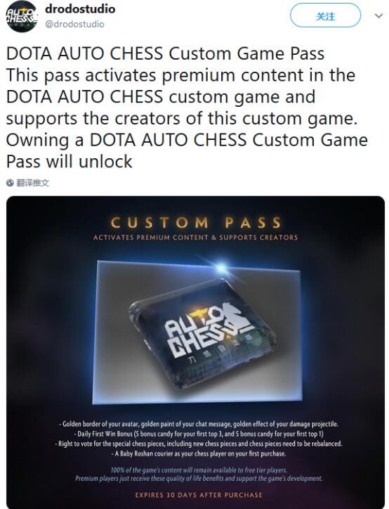 网曝!《刀塔自走棋》将加入通行证月卡 30天奖励只需1美元