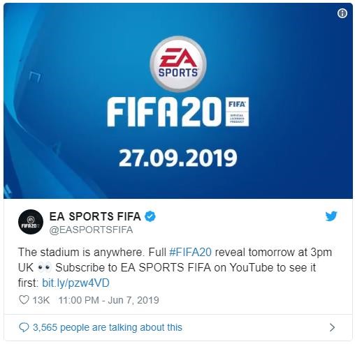 EA今日在Twitter上公布了《FIFA 20》的先导预告,其中也正式确认游戏将在9月27日发售。