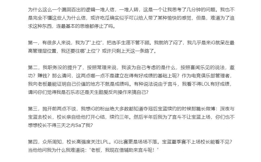 IG战队目前有点烦。他们在LPL已经结束的两轮比赛当中取得了一胜一负的成绩,但是这两场比赛的过程却难以让IG的粉丝们满意。首战DMO,IG新辅助lucas的表现就非常糟糕。虽然IG磕磕绊绊最终还是拿下了比赛的胜利,但是很多人对于lucas已经颇有怨言。 如果说第一场表现不佳是因为压力过大,那么在第二场比赛完败于LNG之后,部分lucas的支持者也已经是哑口无言。对于IG的粉丝们来说,现在这样一支在中前期就爆炸的IG,和春季赛的那支冠军之师简直是天壤之别。对此,大家纷纷表示希望第三战能够让宝蓝上场换掉lucas。然而第三战的首发名单公布之后,我们看到的IG首发辅助依然是lucas。 在宝蓝被替换掉之后,网络上就传出了各种各样的流言,其中以IG管理层藏马与苏小落的“宫斗”最为出名,甚至还登上了微博热搜。不过藏马很快就发文澄清了很多留言,小编觉得藏马的解释中有一句话是非常对的,他都已经是IG俱乐部内仅次于老板王思聪的存在了,还要往哪里上位? IG在MSI的失利,固然有队员的状态原因,但是如此仓促地将二队的替补辅助搬上来,小编觉得真的是一件非常不明智的决定。在更换辅助之后,最受伤的选手或许就是ADC阿水了。原本下路的carry点,在失去了自己的好搭档之后,被lucas拖后腿的jackeylove,已经失去了往日的犀利。 宝蓝的状态怎么样?究竟什么时候才能换宝蓝上来?除了IG教练组,或许没人知道答案。 目前IG的战绩已经排在了LPL赛区靠后的位置,如果他们继续这样的表现,不要说拿到夏季赛冠军了。就连进军S9全球总决赛,或许都会成为一句空谈。 那么问题来了,各位召唤师觉得IG什么时候才能够走出如今的低谷呢?欢迎大家在下方的评论区说出你的想法哦! |