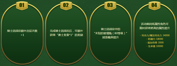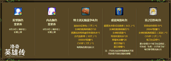 炎炎夏日,暑期将至,《洛奇英雄传》迎来全新版本,骑士团战役辞旧迎新,三个经典战役将焕新为全新骑士团战役等待英雄们的挑战,“古代托尔”、“古代泰坦”以及“古代拉巴萨特”将会为英雄带来何种威胁?在6月19日维护后马上揭晓! 除了激情战役外,《洛奇英雄传》还为大家准备了清凉时装,暗黑女王套装展现极致魅惑,特别版魔女特莉维内套装与透明水晶套装伴你优雅度过火热夏季! 【2019女神的馈赠V】 在6月19日维护后至7月16日维护前,S级“暗黑女王套装”与“暗黑骑士套装”燃烧着幽兰火焰归来,阴森如何与性感交融?暗黑又是否能让霸气更上一个新台阶?只有真正将它们穿着于身,才可知其另类魅力。若是搭配“阴森森的透明艾尔库鲁斯翅膀”,则更添霸气哦! 比起两款暗黑系套装,A级“特别版魔女特莉维内套装”与“透明水晶套装”就显得格外小清新,一款兜帽超短裙突显大长腿,而另一款如梦似幻、若隐若现,引人浮想联翩。 英雄们皆可从2019女神的馈赠V中获得以上套装、外观道具哦!喜欢,就把它们统统入手吧! 【深渊碎片(第五期)】 在6月19日维护后至7月23日维护前,英雄们可使用手中的深渊碎片(第五期)于兑换商店之中换取心仪的时装。此次兑换商店中特别上线两款经典时装——S级闪耀版兔女郎和兔绅士套装(可交易),喜欢兔女郎/绅士套装外形的同时又想拥有能力提升的英雄们可以考虑在兑换商店中入手它们哦! 【时装沙龙】 在6月19日维护后至7月16日维护前,异域风情且装扮清爽的B级“舞者套装”与“舞姬套装”限时上架商城与时装沙龙,透明的薄纱、流动的微光、朦胧的线条之美,绝世舞者完美呈现。 【商城新品】 新版本上线后,“发型/内衣颜色变更券”将长期上架商城,此外在6月19日维护后至7月16日维护前,“骑士团无限战争礼包”助战全新骑士团战役,与炎炎夏日相匹配的“盛夏风情礼包”限时上架,盛夏泳衣款式尽情挑选,还有“夏日凉鞋/草帽”妆点假期哦!此外,还有“持之以恒礼包”与你天天相伴,累计获得15个练习生证明即可兑换“头衔:15天练习生”。 除了经典时装上线外,为迎接《洛奇英雄传》全新版本,四重活动开心一夏!连线Bingo领软萌头饰,与公会成员一起战斗更有额外加成哟!阿内斯特采集活动再度归来,继续为逗趣装饰奋斗吧!官网还有多重惊喜,快来参与吧! 【小精灵的Bingo活动】 6月19日维护后至7月16日维护前,英雄们登录游戏可从邮箱中获得“小精灵的加油箱碎片”,周一至周五登录可获1个,而愉快的周末则可从邮箱中获取4个哟!此外,完成每日任务还能额外获得2个“小精灵的加油箱碎片”。 每集满3个“小精灵的加油箱碎片”就可右键合成为1个“小精灵的加油箱”,开启后将获得“小精灵的一线牵数字选择箱”、“勇士奖章”与“30AP胶囊”,英雄们可从“小精灵的一线牵数字选择箱”中任意选择一个数字。当点亮横、纵、斜的所有格子后即可解锁对应奖励。 每满3/5/8行都有专属道具,而当英雄们成功满行后,还可获得B级时装“摇摇晃晃小猫头饰”。需要注意的是,英雄们只可领取一次奖励,因为奖励一旦领取,将不能继续进行Bingo活动啦! 【战斗吧!骑士团的英雄们】 在6月19日维护后至7月10日维护前,为迎接骑士团战役的全面改版,英雄们进入全新骑士团战役后将会获得以下奖励哦! 【公会BUFF】 6月19日维护后至7月10日维护前,与公会成员一齐进入战役(骑士团战役除外)可根据人数获得不同的增益效果! 除了游戏内活动外,官网还将上线公会日活动,在6月19日至7月15日期间,根据公会在活动期间累计获得的GP点数进行排名,活动结束后将根据三个大区公会获取的GP点数排名发放奖励,获得第一名的公会可获得与自己公会名相同的头衔作为纪念哦! 【阿内斯特采集活动】 满满逗趣头饰的“阿内斯特采集活动”再次归来啦!在6月19日维护后至7月16日维护前,70级以上且习得采集技能的英雄可继续使用“采集副本入场券”在“北方废墟”出航! 【玛赫的幸运秘宝】 在6月19日至7月16日期间,英雄们可在网页活动“玛赫的幸运秘宝”中消耗马赫印记开启“幸运秘宝I/II/III/IV”,开启后将会获得对应的游戏道具,其中包括了梵赛诺出征礼包和六款时装。首次开启无折扣,但从第二次至第四次开启时就会分别享受九折、八折、六折优惠。不过,在兑换前还请认真阅读注意事项哦! 【一起来挖宝】 在6月19日至7月16日活动期间,每日完成10次任意战役即可于次日在活动页面获得2个“铁铲”,在活动中每点击一次方块即会消耗一把“铁铲”,在此次活动中累计最多可挖出20个不同的“宝藏”哦! 以上,即为6月19日全新版本的主要销售及活动内容,夏日炎炎到,正是休闲欢乐时,与《洛奇英雄传》度过轻松每一天吧! 《洛奇英雄传》官网地址>>>http://mh.tiancity.com 《洛奇英雄传》官方微博>>>http://weibo.com/51mh 《洛奇英雄传》运营团队 6月19日 |