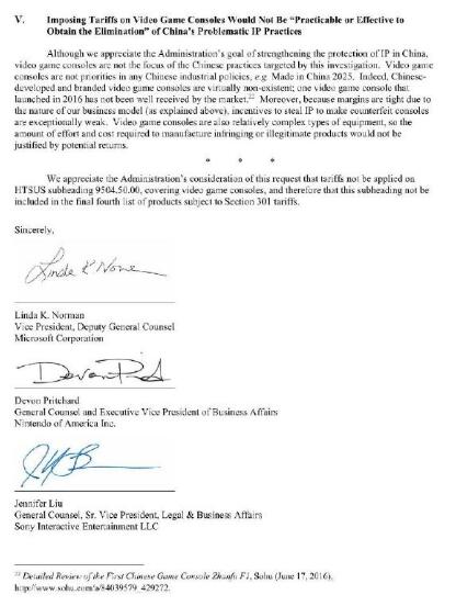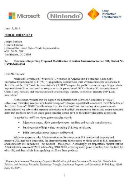 任天堂、微软与索尼联名要求将游戏机从提高中国关税的清单中删除