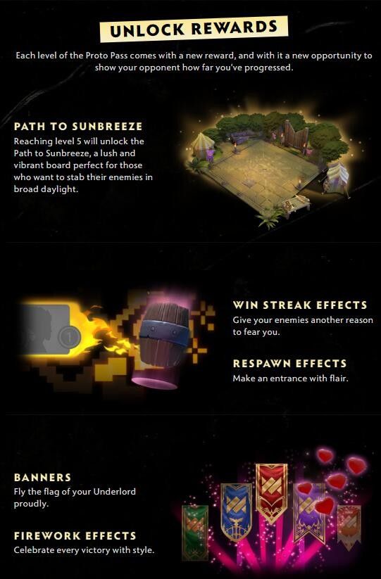 Valve最新的自走棋类游戏《刀塔霸业》,刚于6月20日推出,现在正在进行Beta测试。现在,测试版《刀塔霸业》的首个实验性季票Proto Pass(原型季票)也已上线。 根据官网的说法,参与Beta测试的玩家会自动获得Proto Pass。通过完成每日和每周挑战任务,玩家可通过季票解锁独特旗帜、表情和不同的战斗棋盘(board times)。 鉴于Proto Pass的实验性质,此季票不算正式的官方的季票,玩家也无需为此付款。开发方推出此季票,是为团队推出第一个正式季票积累开发经验。 官方的季票奖励说明 玩家游玩PVP模式或对抗硬核难度(hardcore)机器人可获得Proto Pass经验。升到5级时,玩家可解锁Seabreeze,即一个明亮的白日战斗棋盘。Proto Pass还将为玩家解锁攻击和重生特效,特殊的旗帜、烟火和头像显示框等等。 需要注意的是,由于本次推出的Proto Pass主要服务于测试目的,使用该Pass的玩家,要做好遇到各种系统Bug或显示错误的心理准备。官方也鼓励测试玩家多向制作组发送反馈。 |
