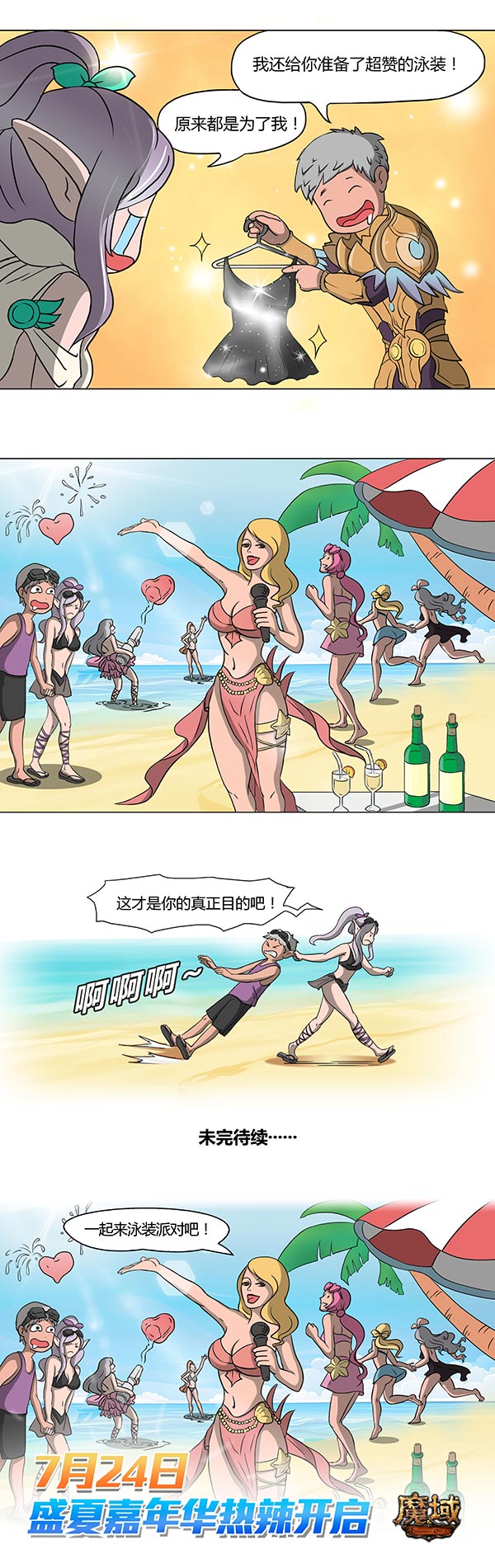 炎炎夏日,阳光沙滩美女比基尼最配啦!《魔域》盛夏嘉年华今日正式开启,为玩家带来一场难忘的狂欢庆典。美艳新品泳装性感登场让您双眼吃足冰激凌,花式趣味活动接踵上线奖励加倍丰厚,热辣party劲爆出击夺人眼球,让人血脉偾张、欲罢不能!清凉夏日LET'S GO,一起出发到《魔域》,体验不一样的盛夏! 绝美泳装魅力来袭 人鱼跟宠萌动出场 热浪太强,赶快来清凉一夏。这个盛夏嘉年华怎么能少得了华美泳装,《魔域》夏日新品泳装“人鱼之歌”、“悠长夏梦”、“海滨派对”及其升级限量版热辣来袭。活力十足的黄色、透着清爽的海蓝色、冷静沉着的黑色、少女心满满的粉色……色彩斑斓的设计再加上薄如轻纱的衣料、各种夏日海洋元素及水枪道具,让人顷刻化身唯美的海洋之神、沙滩派对精灵,与夏季来一场清凉的约会。不仅如此,还有可爱娇俏的小人鱼公主作为新品跟宠软萌出场哦! 不论您是对成熟性感style情有独钟,还是更青睐童话般梦幻的人鱼装扮,又或者对青春活力的热辣小短裙毫无抵抗力,只要参与《魔域》盛夏嘉年华活动就能轻松拥有哦! FUN肆嗨盛夏嘉年华 精彩活动不容错过 火辣辣的夏天,火辣辣的泳衣,还有火辣辣的精彩活动不容错过!《魔域》今日隆重推出盛夏嘉年华,阳光沙滩日光浴,湿身诱惑打水仗,喝着饮料吃着海鲜撩妹……丰富多姿的活动福利,也将为冒险家们带来一抹夏日的清凉。 7月24日至8月1日,玩家可以使用盛夏狂欢券开启盛夏嘉年华活动宝箱,就有机会获得人鱼之歌系列外套、悠长夏梦系列外套、鲲系列缰绳、跟宠等新品。在参与活动中还有机会解锁盛夏嘉年华特别成就哦。如果玩家在“盛夏嘉年华”的许愿中幸运获得了缰绳?小蓝鲲或缰绳?星海灵鲲,还可体验养成的乐趣。利用道具喂食缰绳?小蓝鲲就可进化为缰绳?星海灵鲲;星海灵鲲则可通过养成随机进化为缰绳?炽光鲲皇或缰绳?极夜鲲皇,霸气鲲坐骑等着您。 活动期间,玩家除了通过活动页面中花费魔石购买盛夏狂欢券,也可参与“泳装派对”免费获得盛夏狂欢券【赠】。不管是前往缰绳区租赁临时缰绳,还是前往水枪区点击水枪射击玩家或指定NPC,抑或前往日光浴区点击毯子躺下晒日光浴,甚至是前往餐饮区点击食物吃获得BUFF,都有机会免费获得抽奖券! 夏天就要FUN肆去浪!一年一度的泳装派对大狂欢今日正式开启,还在等什么,快来《魔域》和我们一起狂欢吧! |