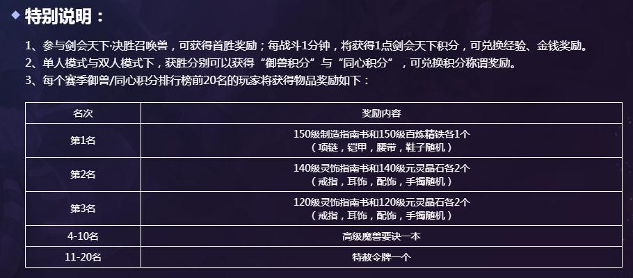 灵宝初现梦幻,风云涌动三界!《梦幻西游》电脑版2019暑期全新资料片“灵宝风云”重磅开启。灵宝系统、单挑模式、决胜召唤兽、太微试剑四大全新内容带来全新系统、全新模式、全新玩法、全新挑战,更有丰厚奖励、荣誉称谓拿不停。这个夏天,让我们畅玩梦幻西游,尽享不一样的精彩游戏。 灵元至宝现三界,门派加持新系统 《梦幻西游》电脑版全新资料片“灵宝风云”将首次加入灵宝系统,该系统带来了全新战斗资源—灵元。每个门派都有属于自己门派独一无二的专属灵宝,同时,也有全门派可使用的通用灵宝。等级≥109的玩家,会自动获得“灵宝现世”剧情任务,根据提示完成任务后,即可获得对应门派的灵宝! 完成“灵宝现世”剧情任务后,玩家可在太上老君处领取通用灵宝任务,根据提示完成任务后,即可获得对应的灵宝。玩家在战斗中每隔一定回合自动获取灵元,主动消耗灵元即可驱动灵宝。在合适的时机使用灵宝,必将斗转星移,瞬息间以胜定乾坤! 单挑擂台比高低,高手过招新模式 全新资料片“灵宝风云”还开启全新模式—单挑模式。玩家学会太上老君开创的“单挑诀”后,可向其它玩家发起“单挑”。该模式会在擂台和剑会天下中开放,玩家可召唤4只召唤兽同时参战,还将获得“单挑诀”中的5个新技能。 该模式将让喜欢SOLO的玩家,寻找到更多志同道合的高手,在游戏中进行切磋,磨练玩家和召唤兽协作战斗的技艺。同时,参与剑会天下单挑模式将获取挑战积分兑换“单挑称谓”,而且每个赛季各组别“单挑积分”的前20名将获得丰厚奖品。 玩家决胜召唤兽,别样乐趣新玩法 全新资料片“灵宝风云”带来了全新玩法—决胜召唤兽玩法,该模式中玩家角色不再亲自下场比拼,只有召唤兽能够参与战斗。在这种新玩法中,玩家可以选择单人或者与朋友双人组队,上阵多只召唤兽进行切磋。在战斗中召唤兽能够激发独有的“兽魂”能力也让新玩法充满了奇幻变数,让游戏充满别样乐趣。 同时,该模式还定制了专属赛事“剑会天下·决胜召唤兽”,在固定的日期和时间段可以参与赛事,获取剑会天下积分,可兑换相应奖励。获胜玩家更可获得“御兽积分”或“同心积分”,一样可以兑换积分称谓奖励;以及每个赛季御兽/同心积分排行榜前20名的玩家将获得丰厚奖品。 太微试剑退强敌,势不可挡新挑战 本年度暑期全新资料片还带来了全新的PVE模式——太微试剑,玩家可以挑战各具特色的Boss,并在全服段位排名系统中与其他玩家一争高下。另外战斗“词缀”在这里将会对怪物或者我方队员都可能生效,这会为战局带来非常微妙的变化。 太微试剑还以赛季为周期进行,设立专属段位!双数轮竞赛及赛季结算完成后,影及以上段位玩家获得对应周/赛季奖励,段位越高奖励越丰厚。“星”及以上段位更可获得特殊称谓。 青春无极限,梦幻无止境。全新资料片已于7月23日开启测试,7月30日正式全服上线。全新系统、全新模式、全新玩法、全新挑战让这个夏天注定不一样,赶紧开启自己的梦幻新征程,锁定7月30日全新资料片“灵宝风云”,不见不散! |