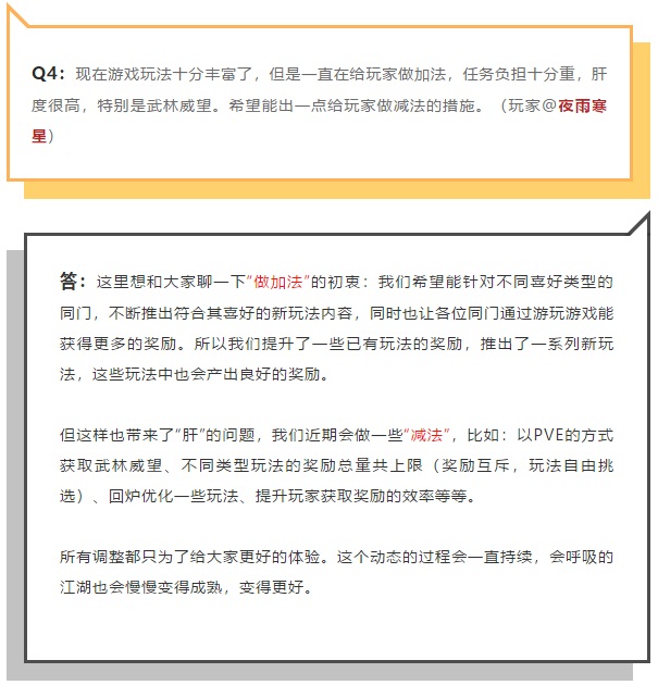 网易旗舰武侠网游《逆水寒》的宣传语一直是“会呼吸的江湖”,主打江湖的烟火气和与NPC真实互动的沉浸感。在这个北宋江湖里,行走在汴京杭州的街头小巷,你能听到走街串巷小贩的吆喝声,身边时不时会经过骑着马匆匆赶路的书生和官员,就连某个僻静的小角落也会有NPC为了自己的人生大事寻死觅活。 地图角落的NPC吵架 但往往事与愿违,自从《逆水寒》上线以来,大小问题层出不穷。精致的画面、剧情、庞大的背景都不能让玩家放弃吐槽游戏玩法单一这个问题——日常一条龙、舞阳城团本打了一年,每天上线一小时就只能看风景发呆。许多玩家表示已经审美疲劳,每天打一样的副本,手都已经按出肌肉记忆了。 然而,在经历了5月的结构性改革,6月的周年版本大更新,逆水寒玩家们喊游戏不好玩、玩法少的声音渐渐没了踪影,取而代之的却是抱怨游戏太肝,呼吁策划减负,这是什么情况? 其实我们从《逆水寒》这两个月的更新中就能找到答案: 第一,江湖身份版图的成熟。早期逆水寒只有佛教一个江湖身份,在后续的更新中,《逆水寒》在周年版本一口气上线了道教、儒教、乐师三个全新江湖身份,让玩家能够以一个全新的角度来融入这个会呼吸的江湖。 江湖身份系统完善之后,《逆水寒》的玩家可以说是很入戏了: 相信玄学,对传统风水感兴趣,道教是你的归宿。每天打本前给队友算算运气如何,玄学打本保佑自己多多爆装备。 拜入儒家,需要读万卷书行万里路,到处采风变成大宋美景活地图;成为乐师,你就可以学习弹奏古筝古琴,即使是音痴小白也能奏出华美乐章;皈依佛门,便能在美得不像话的千年古刹静云寺里撸猫念经。 《逆水寒》新上线的静云寺地图 第二,《逆水寒》对休闲玩家的友善度提高了很多。在近两个月的更新中推出了能够代替日常一条龙副本的休闲花车玩法——玩家只用一边护送花车,一边欣赏周围的美景和小动物玩耍,即可获得和一条龙一样的经验和收益。 同时,各种高质量的独立休闲玩法例如豪侠战旗、荒野求生等等,凭借着纯正的武侠风格,频繁的更新吸引了大量玩家的参与。试问谁不会对中国武侠风格的自走棋、求生感兴趣呢?并且部分休闲玩法还有一个良心的设定——玩家可以选择设置不消耗点卡时间参与特定玩法,也能选择消耗点卡时间换取游戏里的实用道具奖励,这样的设定还真的吸引了一批只对《逆水寒》某个休闲玩法感兴趣的轻度休闲玩家。 排行榜上只玩《逆水寒》豪侠战旗的玩家 第三,团本的丰富。《逆水寒》在周年资料片上线了第三个大团本——昆仑墟遗迹。这个副本凭借着精美的地图、有趣的BOSS机制设计获得了玩家的一致好评,许多玩家表示这个昆仑墟遗迹副本可以说是一个超大型的密室逃脱,各种机关超级有趣;甚至有玩家感叹挑战昆仑墟的新BOSS似乎找回了他们多年前玩wow时的感觉。 昆仑墟遗迹BOSS之一 庆幸的是,虽然新副本BOSS机制设计繁多,但难度却十分亲民,平民玩家的大部队除了最终BOSS都能轻松通过,加上新副本会掉落丰富,昆仑墟遗迹副本也被玩家成为《逆水寒》中最良心的福利本。 这样看来,《逆水寒》在最近两个月的更新中增加的新玩法的确是很多的,也正因为这些玩法好玩,并且收益高,所以玩家才会愿意花时间去玩去肝。不过对于最近玩家抱怨如果想要所有奖励就太肝了的问题,《逆水寒》的策划表示会在后续的更新中推出解决方案。现在的《逆水寒》算是真的能让玩家好好呼吸了,至于这个江湖今后会怎样发展,就让我们拭目以待把~ |