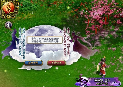 迢迢牵牛星,皎皎河汉女。纤纤擢素手,札札弄机杼。七夕节起始于上古,普及于西汉,鼎盛于宋代。相传,在每年的这个夜晚,是天上织女牛郎鹊桥相会之时,而这个美丽的传说使这个日子成为了爱情的象征。现如今,在七夕的众多民俗当中,有些逐渐消失,但还有相当一部分被人们延续了下来。 《问道》官网:http://wd.gyyx.cn 《问道》新浪微博:http://weibo.com/wendaoguanfang 就在这个浪漫的节日中,光宇游戏《问道》为各位公测版玩家推出“乱点鸳鸯谱”“勇闯天庭”“鹊桥相会”等三大专属活动,与各位道友们共度七夕。 首先是乱点鸳鸯谱活动,在8月7日至8月11日期间,所有真身等级大于60级的玩家均可点击页面右上角“乱点鸳鸯谱”小图标参与此活动。在进入活动页面后,道友们可选择使用200元宝进行“点谱”,也可以使用2000元宝进行“十连点”,将四对情侣们进行组合,当任意一对情侣配对成功,玩家便可以获得对应银元宝及情缘值奖励,当情缘值达到1000时可获得所对应的满值奖励。 其次是勇闯天庭活动,此活动同样也是在8月7日至8月11日之间开启。活动期间,所有等级数在60级以上的玩家增加七夕勇闯天庭任务。任务为闯关挑战层数的活动,每人每天同一类型的任务仅能挑战一次,玩家可选择单人挑战也能够组队进行挑战。活动分为偷渡和勇闯两种模式,若选择偷渡模式可免费进行挑战,但最大挑战层数为50阶,而在勇闯模式下模式,玩家在挑战前需缴纳2,000,000的代金券或游戏币,挑战限时两个小时,不限阶数,挑战完成即可按照阶级获得数值、道具等奖励。 最后就是8月19日,在风月谷开启的鹊桥相会活动,同样也是需要玩家真身等级达到60级以上才能够参与活动,为帮助牛郎与织女相会,玩家需要击败三波天兵、天将、天帅等敌人,当第三波天帅被击败后,道友们就可以获得道具奖励。值得注意的是,男女共同组队可获得奖励加成哦。此外,牛郎和织女还因为要一起去天庭还是人间生活的问题产生了争执,玩家还需要根据活动提示,选择用喊话或提交道具等方式支持牛郎或织女,支持即可获得数值奖励。当活动时间进行至8点30分时,牛郎织女将发红包答谢道友援助之情,并根据支持结果,为胜利这个道友们赠与相应的声望奖励。 《问道》专为各位道友们打造的浪漫七夕活动现已开启,多种活动、海量奖励与你一起度过浪漫七夕节,快进入游戏一起参与活动吧! |