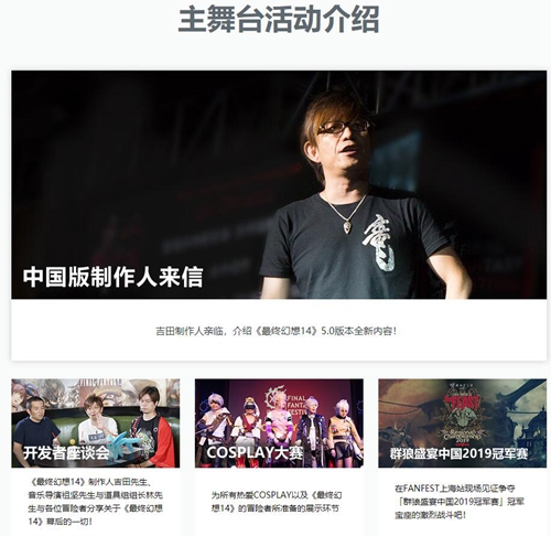 《最终幻想14》2019 Fanfest上海站将于8月10日(本周六)在上海新国际博览中心举办。《最终幻想14》制作人兼总导演吉田直树会亲临现场,与到场的粉丝见面和交流。同时,也将迎来国服五周年的庆典。 Fanfest可网络直播观看 本次Fenfest上海站,玩家们可以通过bilibili进行现场观看(乐队演出环节不在直播范围内)。无论你是能够到现场的玩家(现场需要凭票入场),还是在线上观看,都能够感受到Fanfest所带来的氛围。 现场指南 官方公布“懒人包” 为了能够让广大玩家顺利参与Fanfest,官方还在官网公布了关于本次Fanfest的入场指南等信息:http://act.ff.sdo.com/2019Fanfest/index.html#/floor 燃爆这个夏天! 燃爆这个夏天! |