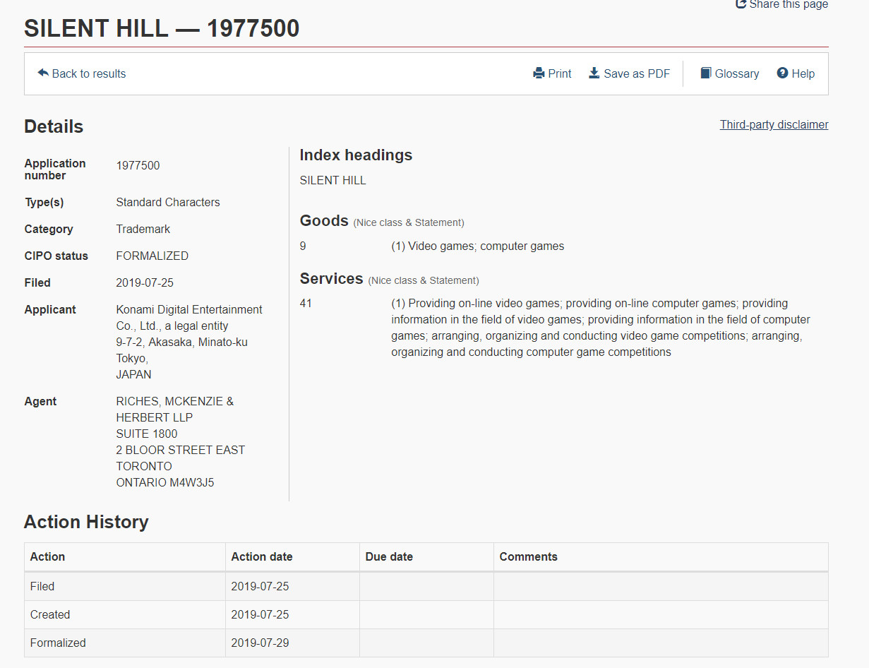 【叶子猪网8月15日讯】 有网友发现,Konami近期在加拿大知识产权局为经典恐怖游戏《寂静岭》重新提交了新的商标申请,提交时间为今年7月25日。 商标页面信息显示,Konami提交的申请类型是“商品和服务”,包括游戏和电脑游戏。《寂静岭》此前注册的商标将在今年12月6日到期,Konami可能只是确保商标保留在自己手里,但也不排除Konami复活这一系列的可能性,该公司近期连续推出了《魂斗罗》、《恶魔城》等合集,或许我们可以在最新的游戏设备上玩到原汁原味的《寂静岭》。 |